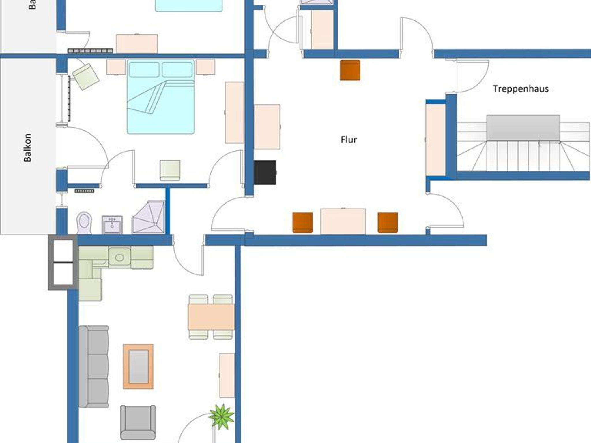 Diese Ferienwohnung ist 78m² groß und verfügt über zwei große, mit einem Doppelbett ausgestattete Schlafzimmer, ein separates Wohn- und Esszimmer, eine vollausgestattete Küche sowie drei Balkone, die zur Süd- und Westseite ausgerichtet sind.