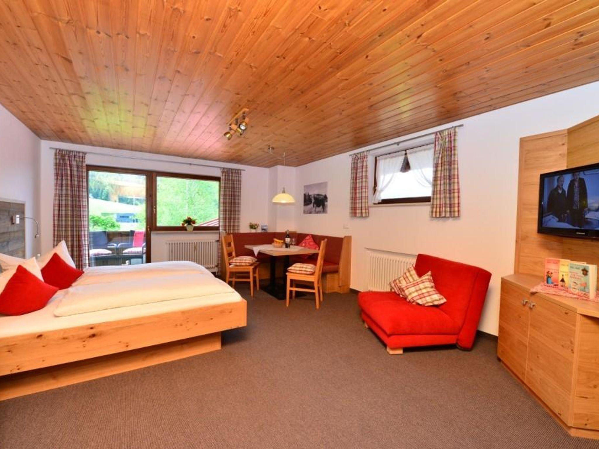 Unsere gemütlichen Ferienwohnungen sind komplett eingerichtet und verfügen alle über einen Südbalkon oder eine Südterrasse mit Blick in die Berge. Die freie Lage unseres Hauses bietet Ihnen einen schönen Garten mit anschließender großer Wiese, Platz zum Spielen für Kinder ist reichlich vorhanden.