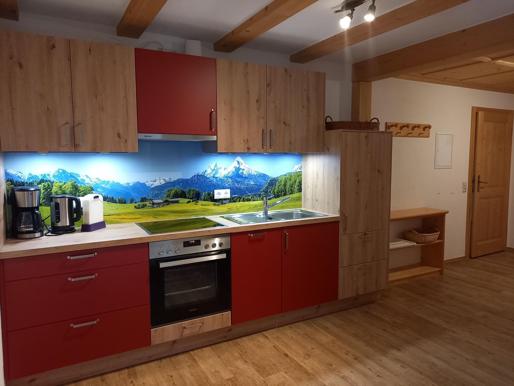 Großzügige Ferienwohnung mit herrlichem Blick auf die Tiroler und Allgäuer Berge. Rundherum Wiesen und Wälder, die Sie vom Südbalkon aus geniesen können.Gemütlich ausgestattet mit viel Holz im Allgäuer Stil.Komplette Küche mit ausreichend Geschirr,mit Backofen und Spülmaschine.Heller freundlicher Wohnraum mit Essecke und Couchgarnitur.Genügend Platz auch in unseren 2 großen Schlafzimmern.DU/WC.