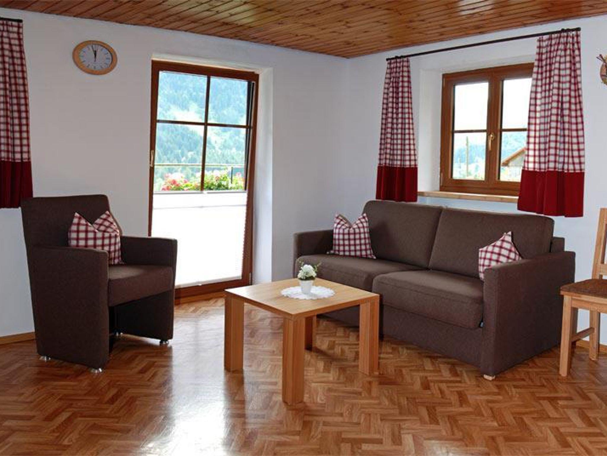 Helle Ferienwohnung mit herrlichem Blick in die Berge und nach Unterjoch. 1 Schlafzimmer und groß geschnittene Wohnküche. Großer Balkon Südostseite. Im Schlafzimmer drittes Bett mit dabei, in der Wohnküche Doppelausziehcouch mit bequemer Schlafmatratze. Einbauküche ausgestattet mit Spülmaschine, 4-Plattenherd mit Backofen, Kühlschrank und reichlich Ess- und Kochgeschirr. Ideal für Familie mit 1 bis 2 Kindern.