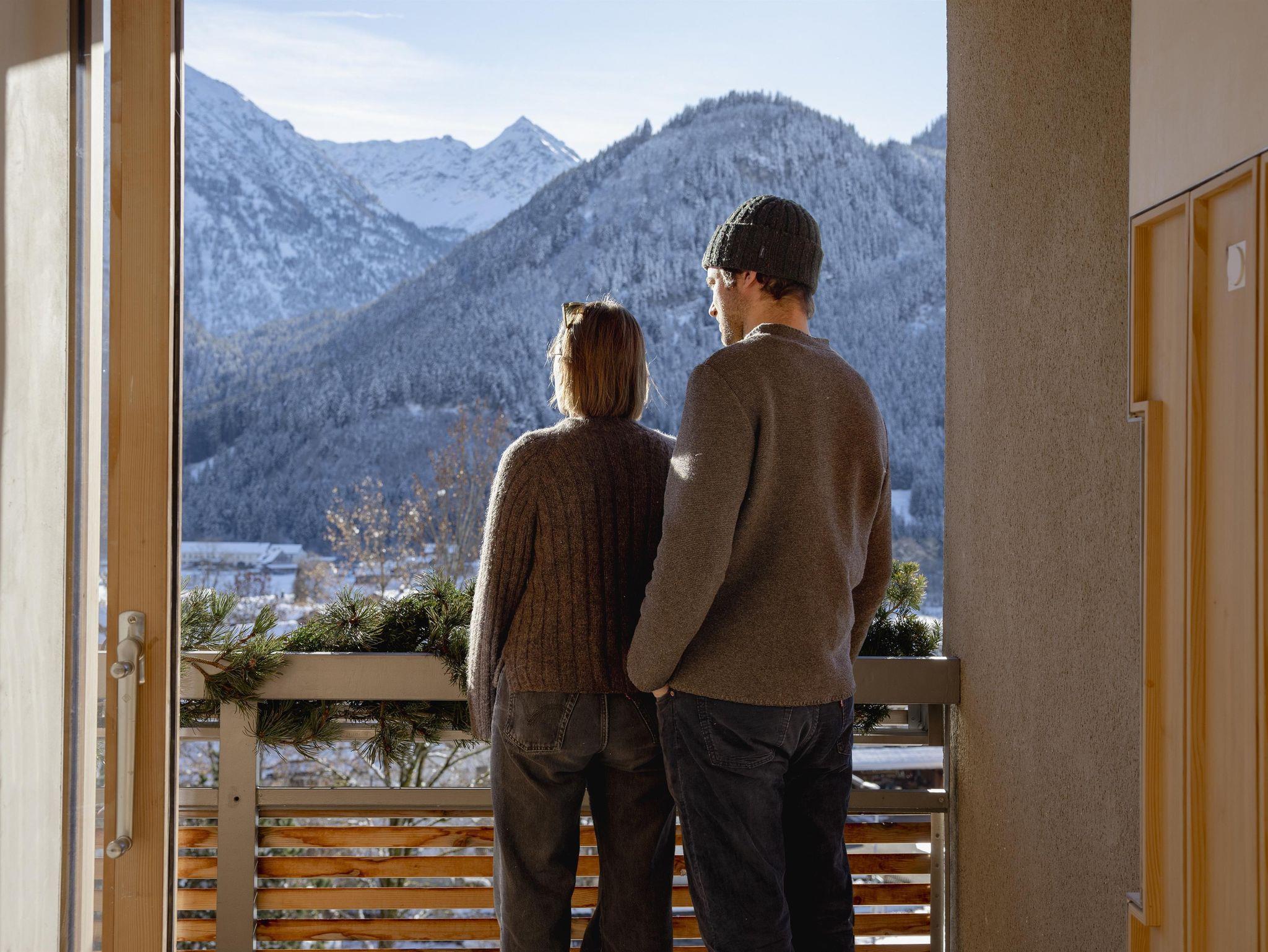 Ganztags die Sonne hereinlassen und vom Betten aus Rotspitze und Imberger Horn bestaunen. Im Stübchen erhaben oder geerdet schlafen. Wohlige Atmosphäre durch Massivholz, Lehmputz und Strahlungswärme.