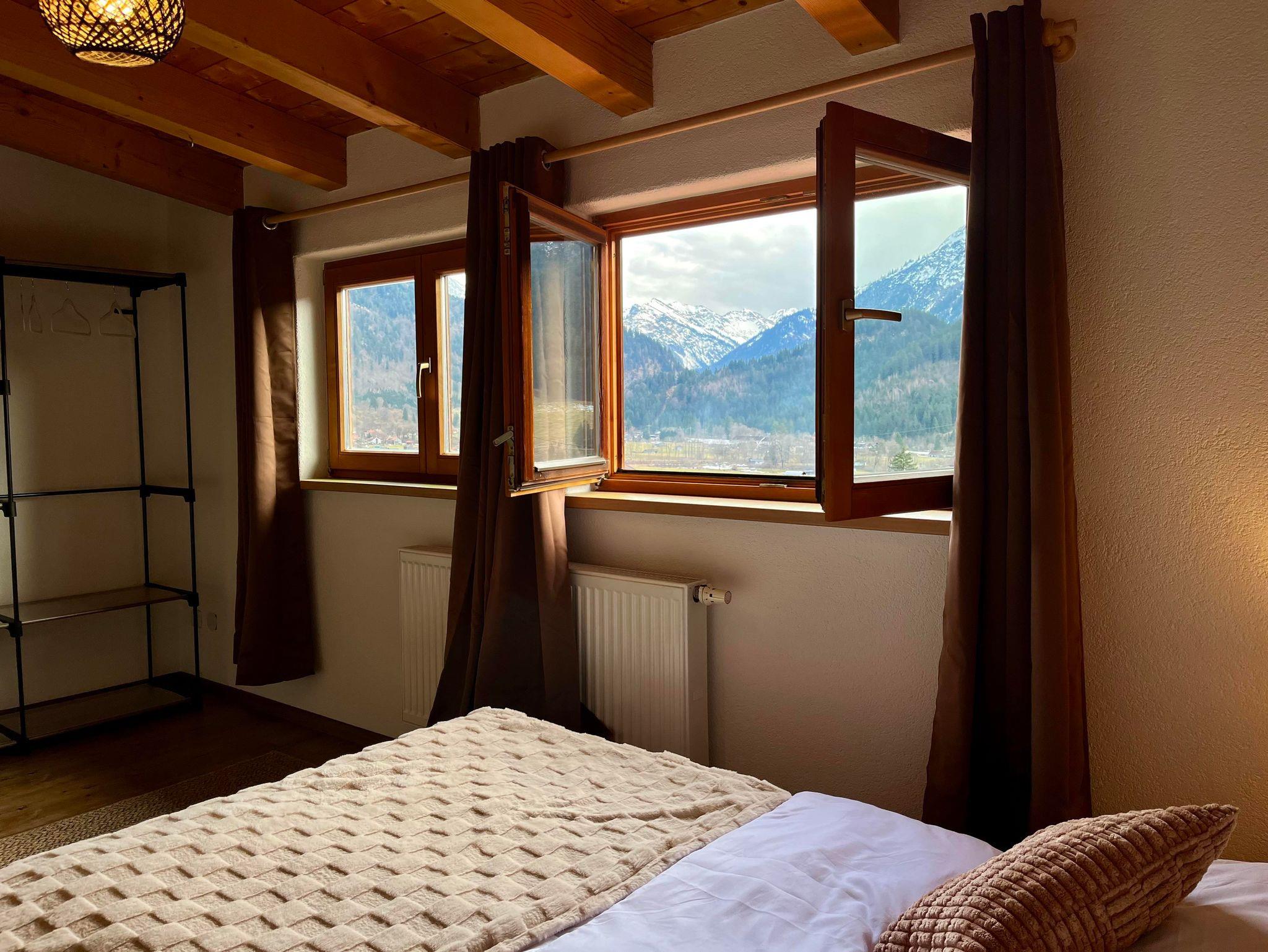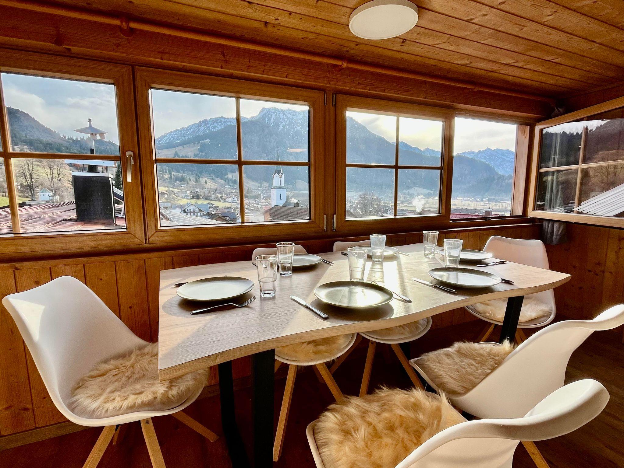 Stylische Ferienwohnung im Herzen von Bad Hindelang mit traumhaftem Rundumblick auf die Allgäuer Alpen. Auf 82?m² bietet sie Platz für bis zu 6 Personen, mit zwei Schlafzimmern, Wohnbereich mit Schlafcouch, Essbereich, voll ausgestatteter Küche und Badezimmer. WLAN, Parkplätze und E-Ladestationen inklusive. Perfekter Ausgangspunkt für Wanderungen, Skifahren, Radtouren und Outdoor-Aktivitäten. 24h Self-Check-in und ein kleines Bänkchen vor der Tür runden den Aufenthalt ab.