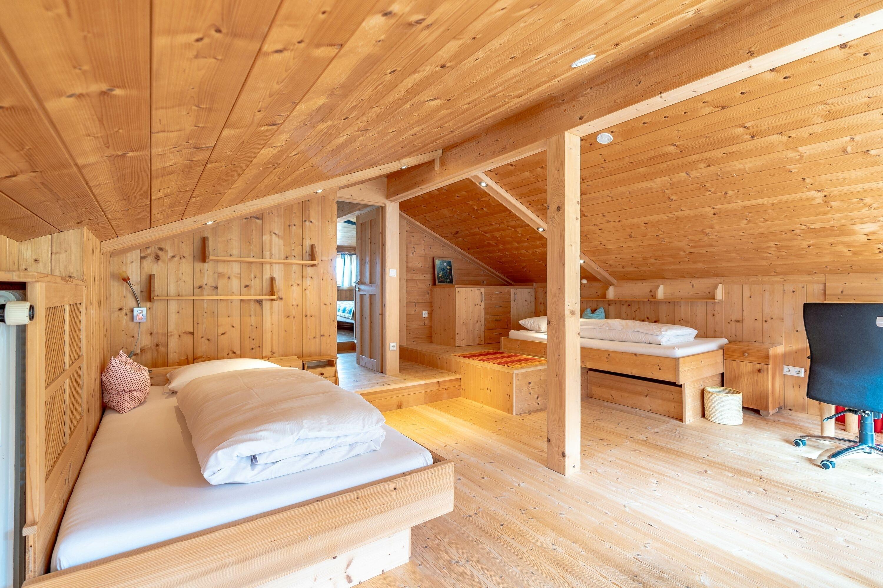 Das "Ferienhaus Kuisle" im Hüttenstiel in Bad Oberdorf bietet auf insgesamt 170 m² Platz für bis zu 7 Personen. Es hat 3 Etagen und verfügt über 4 gemütliche Schlafzimmer, einen hellen, großzügigen Wohnbereich und 2 Badezimmer. Sie finden ein gemütliches und ursprüngliches Wohnambiente vor, Einrichtung in Holz gefertigt, handgemachte Maßarbeiten aus eigener Werkstatt, naturbelassen und bodenständig.