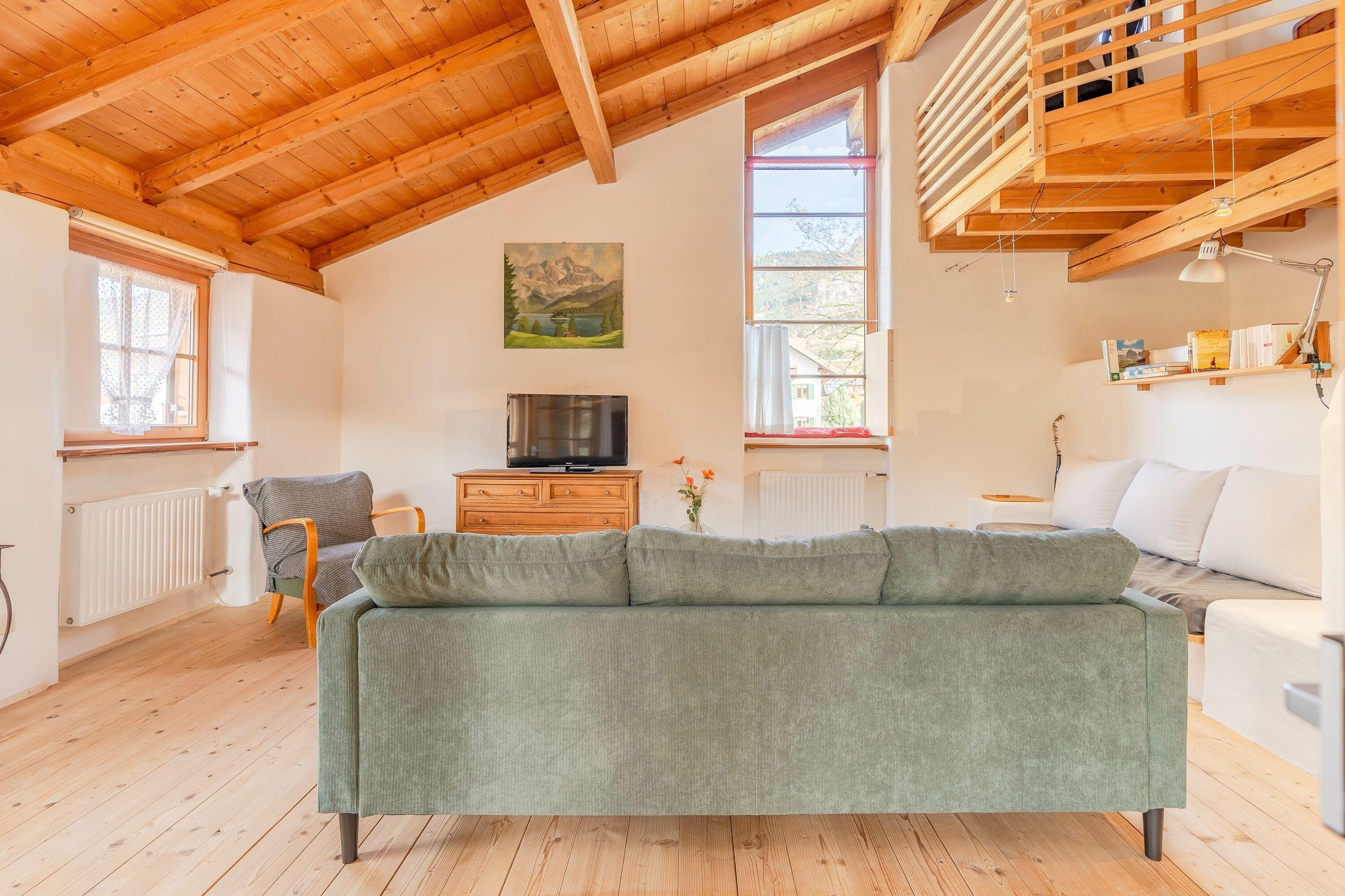 Die Ausstattung umfasst unter anderem eine Waschmaschine, [nbsp]TV, WLAN Anschluss, Garage und einen Parkplatz. Für Entspannung sorgen zum Beispiel die gemütliche Ledergarnitur im Wintergarten mit Aussicht auf die Berge, sowie eine Badewanne im Badezimmer. [nbsp]In der voll ausgestatteten Küche mit Geschirrspüler können Sie sich selbst verpflegen. Vom Balkon aus, sowie aus sämtlichen Fenstern genießen Sie traumhafte Bergblicke.