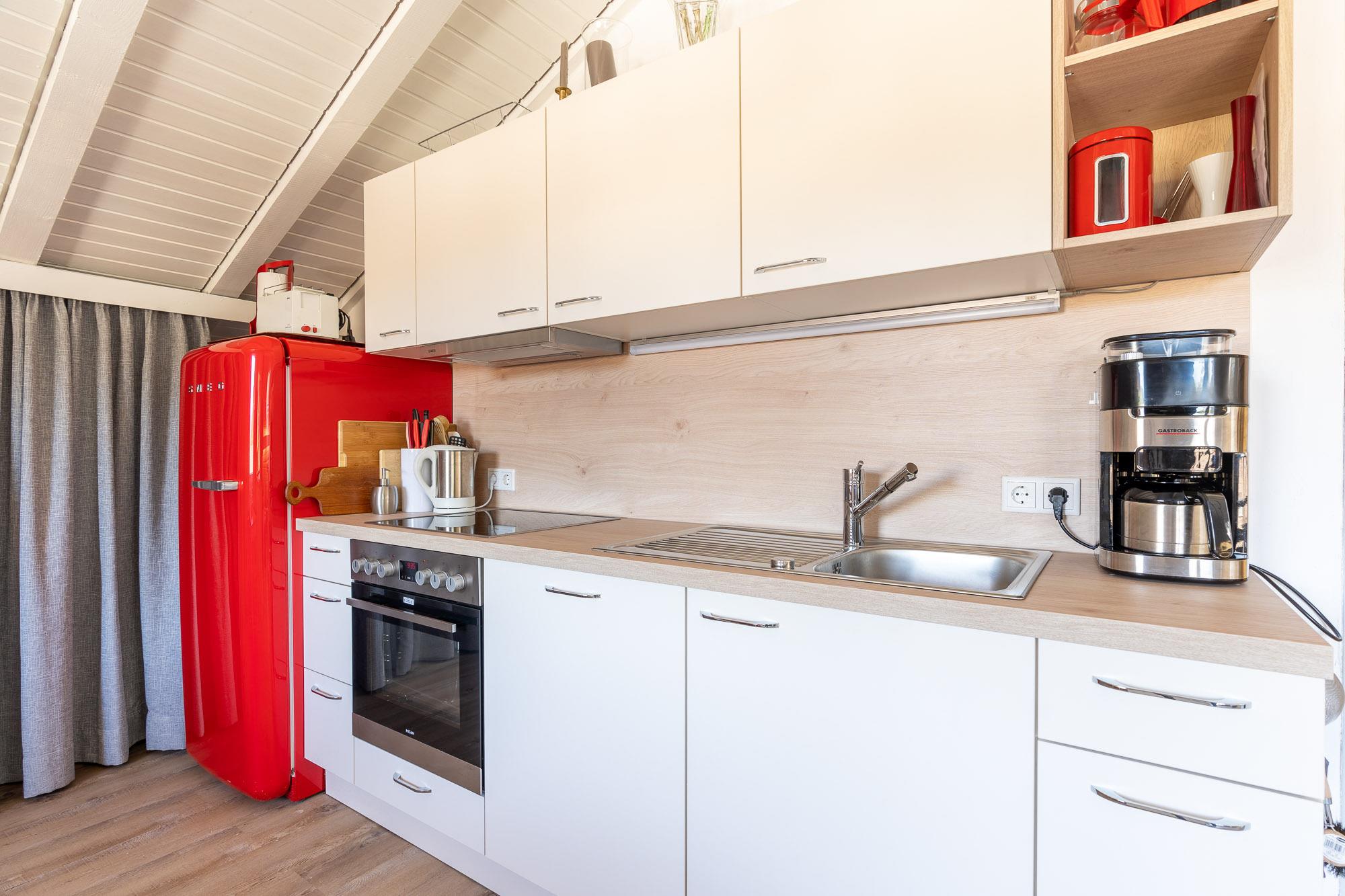 Wer gerne kocht wird in der gut ausgestatteten Küche alles finden. Sie verfügt über ein Cerankochfeld, Backofen, Spülmaschine und vieles weitere mehr.
