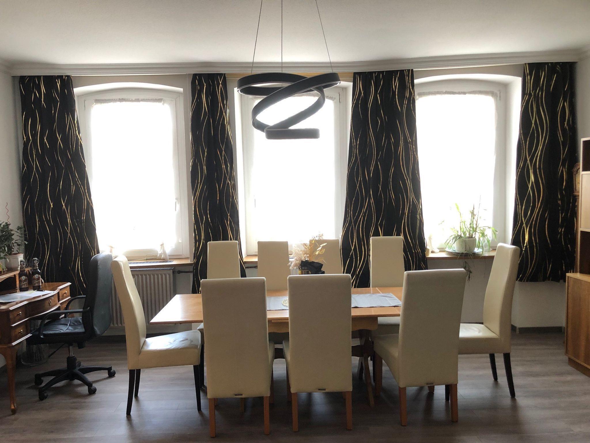 Diese wunderschöne Wohnung ist im 1. OG des Gebäudes und über den Hintereingang der Einbahnstraße (Schlundstr.) erreichbar. Sie wurde gerade im vorderen Bereich modernisiert und mit einer neuen Küche ausgestattet. Der hintere Bereich hat noch ein paar alte Erinnerungen an die Zeit des Hotel Heintz, die wir gerne und bewusst so erhalten haben. Die erweiterte Wohnung ist sehr verwinkelt und verspielt, was den alten Charakter des Hauses widerspiegelt. Ein Highlight ist das licht-durchflutete Wohnzimmer (3 große Fenster der Mitte des 1. LGs), das zum Genießen und Entspannen einlädt, mit dem schönsten Blick auf den Marktplatz und das Rathaus. Dieses Zimmer war früher der Frühstücksraum der Hotelgäste vom ehem. Hotel Heintz