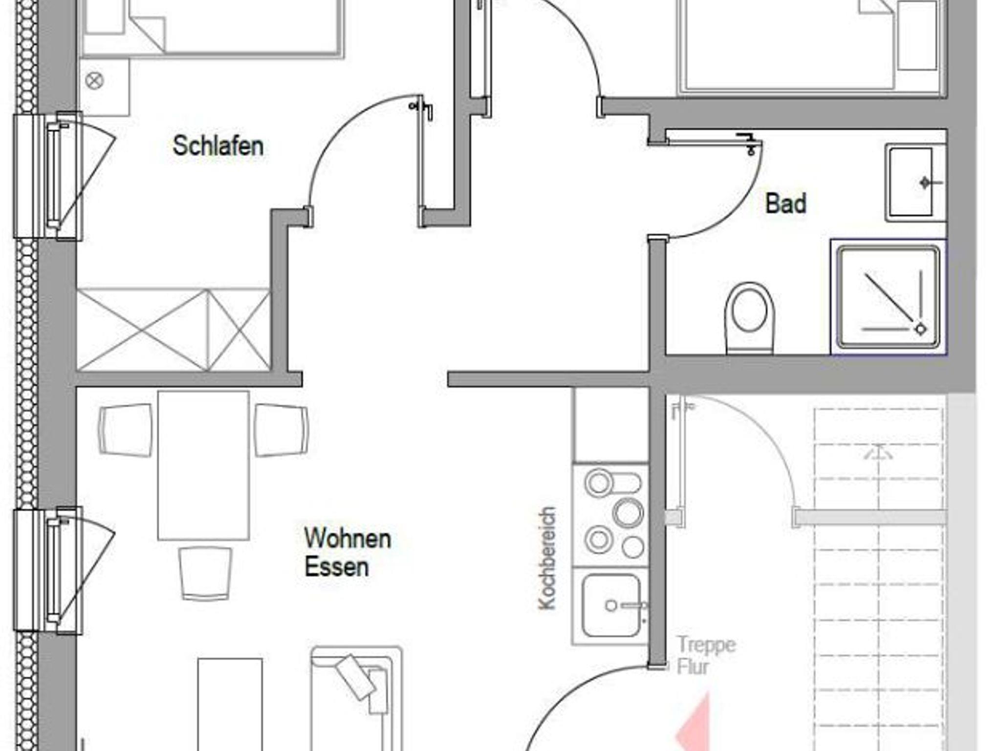Unsere neue Ferienwohnung mit 50 m² Wohnfläche bietet im Erdgeschoss mit Gartenblick Platz für 1-4 Personen. Die gemütliche Wohnküche mit Sofa und Flachbild-TV lädt zum Verweilen ein. Die komplett ausgestattete Küchenzeile mit Geschirrspüler, Kühlschrank inkl. Gefrierfach, Herd, Backofen, Mikrowelle, Wasserkocher, Toaster und Kaffeemaschine lässt keine Wünsche offen. Die Ferienwohnung verfügt über zwei separate Schlafzimmer mit einem Doppelbett und zwei Einzelbetten. Das Badezimmer mit ebenerdiger Dusche, WC, Waschtisch und Handtuchtrockner rundet das Gesamtbild ab. Vor allem im Sommer können Sie entspannte Grillabende in unserem Garten verbringen. Bitte beachten Sie, dass keine Haustiere erlaubt sind. Das WLAN und den Parkplatz vor dem Haus können Sie kostenfrei nutzen.