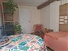 Fliesenboden, kleine Teppiche, Einzelbett, Stuhl und Beistelltisch, zwei Bodensitzkissen und orientalischer Tee-Tisch zwei Bodensitzkissen, Glastisch mit 2 Glasplatten, Metall-Glas Regal, Kleines schlichtes Ablageregal für Kleidung. Garderobenständer. Beleuchtung im Orientstil