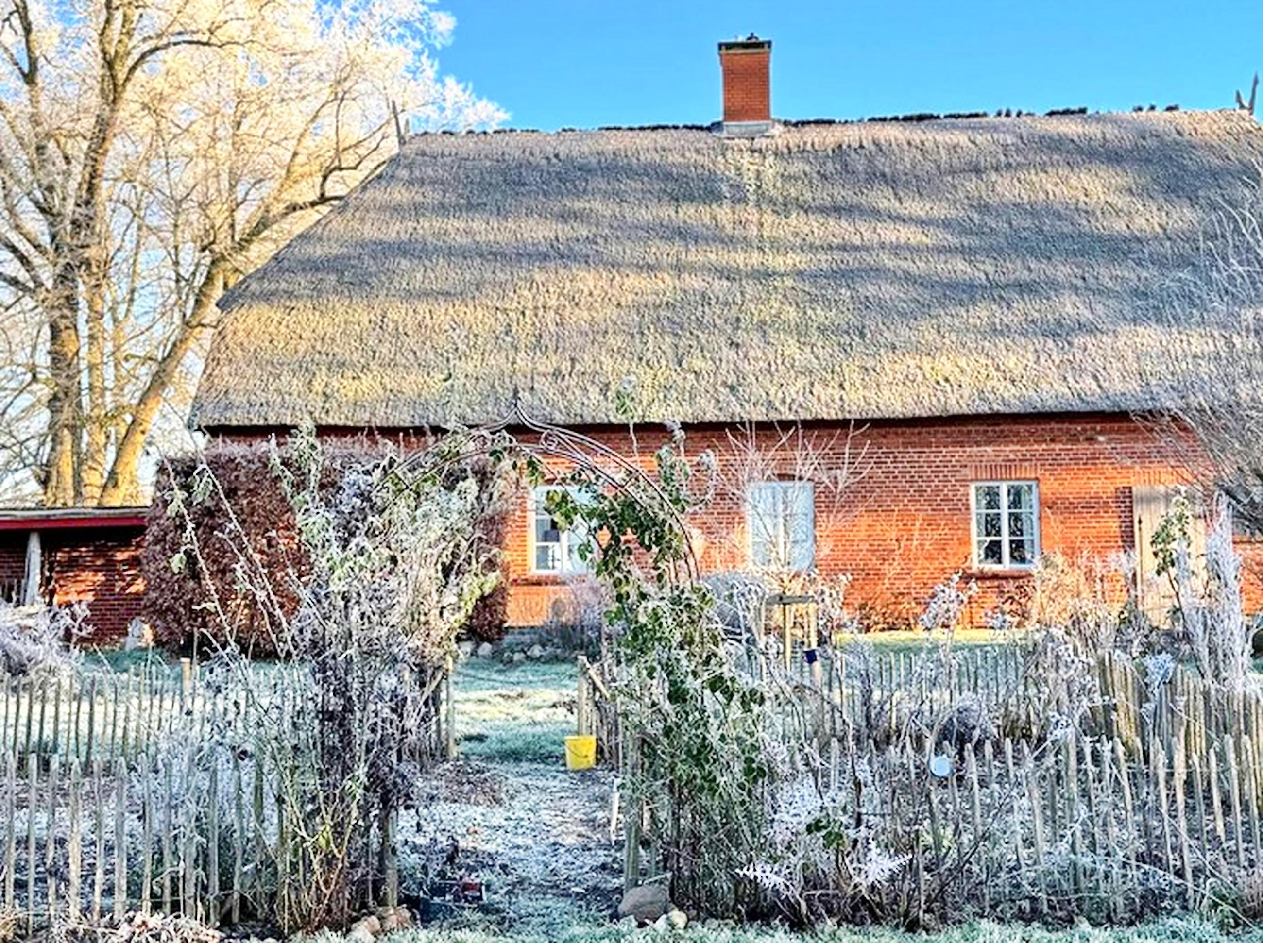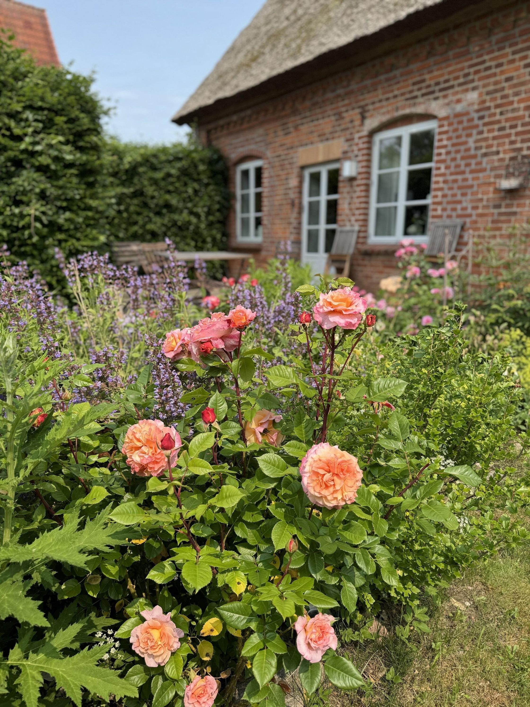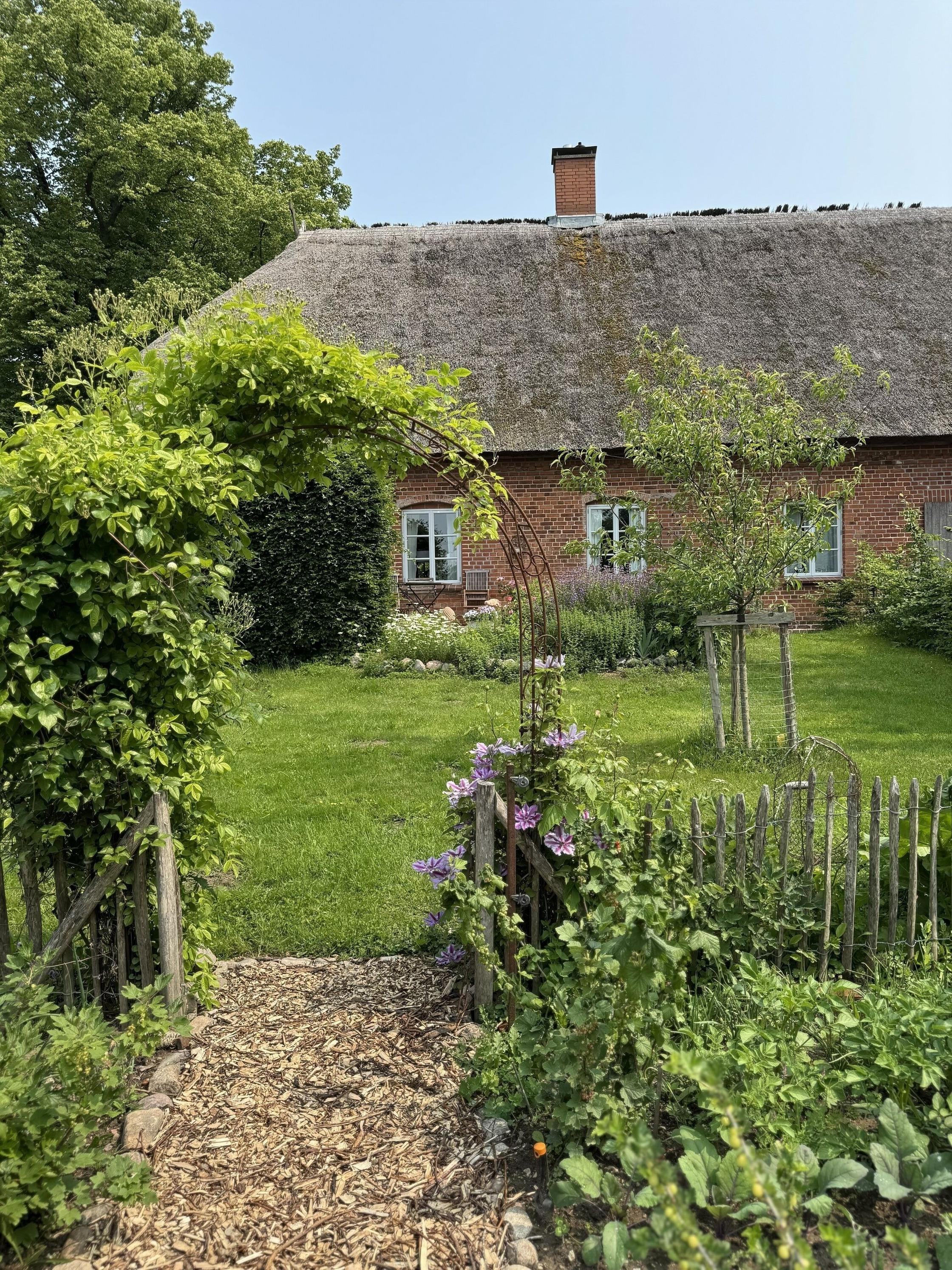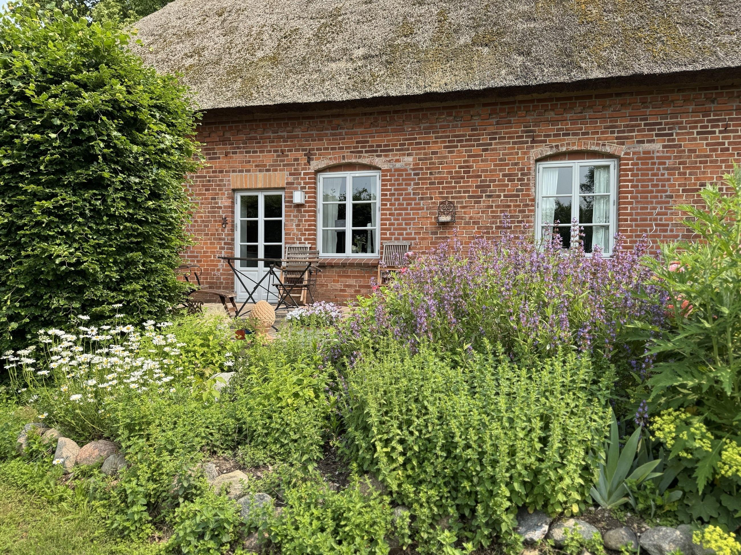 Ein schönes Ferienhaus mit Reetdach. Die ehemalige Kutscherremise befindet sich auf dem Gelände vom Gut Niendorf.