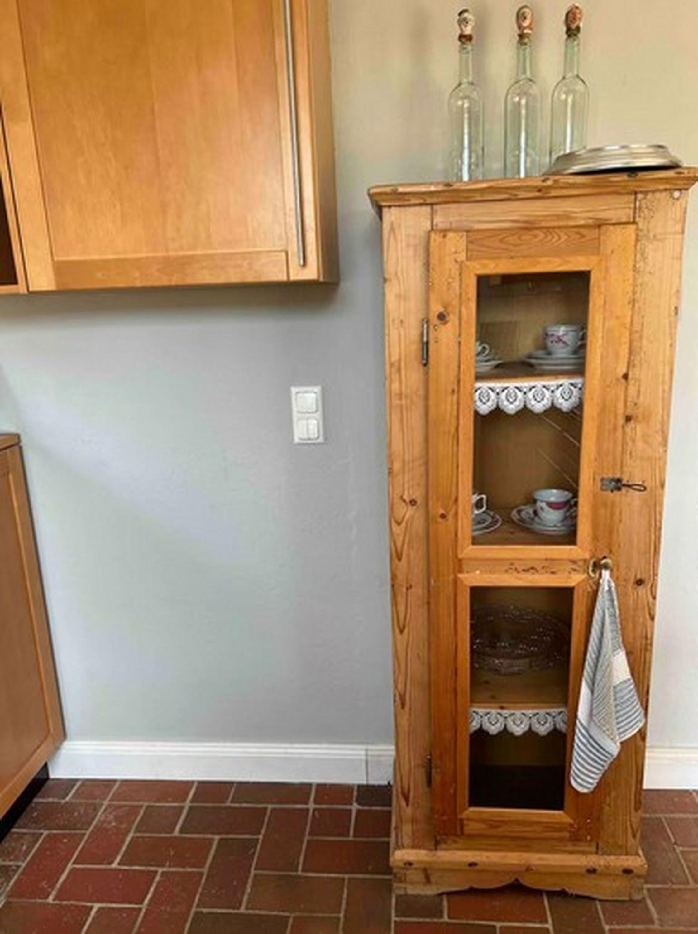 Die Küche ist mit den üblichen Geräten, wie Kühlschrank, Spülmaschine, Herd, Backofen und Dunstabzug ausgestattet. Außerdem gibt es eine Kaffeemaschine, einen Toaster und einen Wasserkocher. Und natürlich sind reichlich Besteck und Geschirr, Bratpfannen und Töpfe vorhanden.