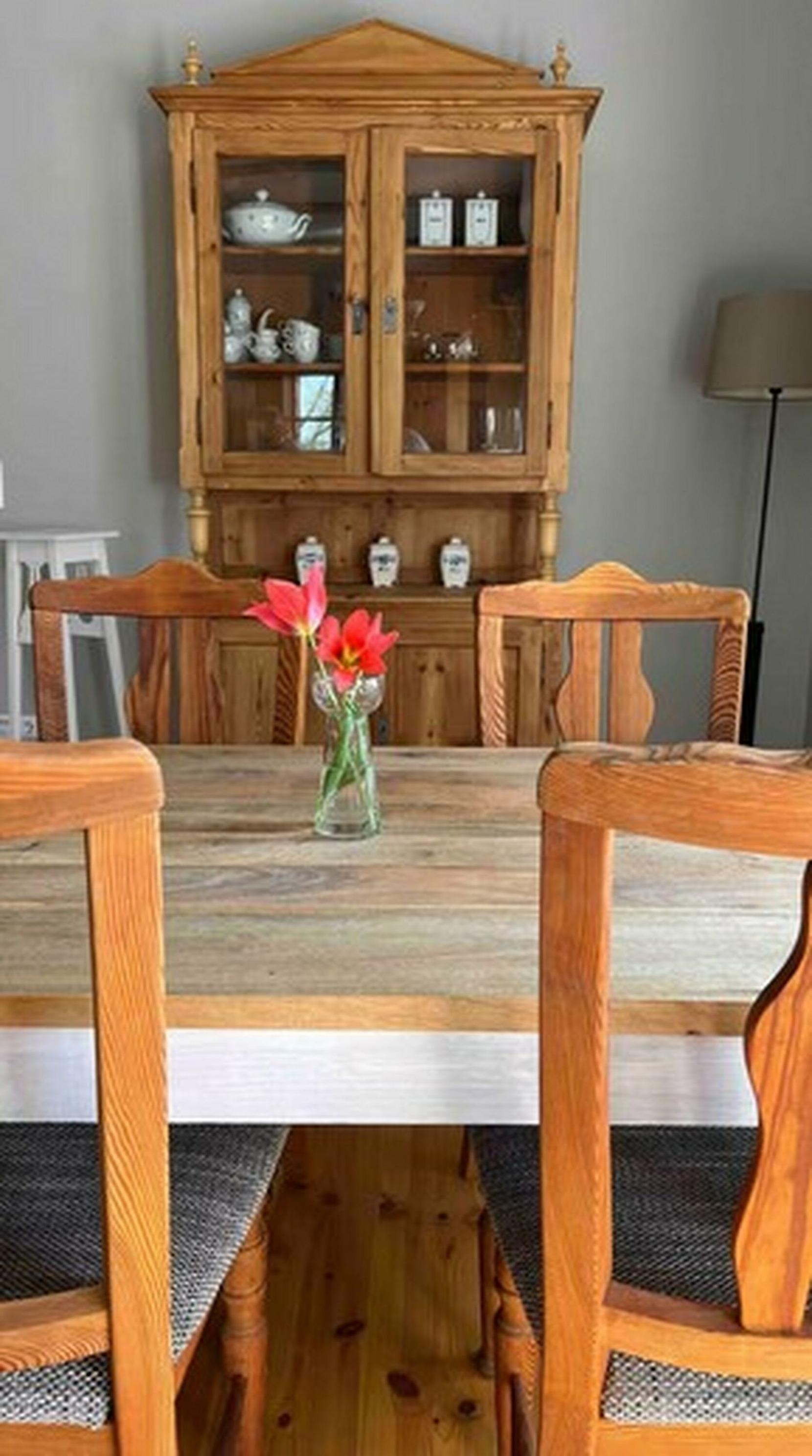 In der Kutscherremise befindet sich der großzügige Wohnbereich ebenerdig mit ca. 100 qm, den wir komplett 2023 neu gestaltet und eingerichtet haben.