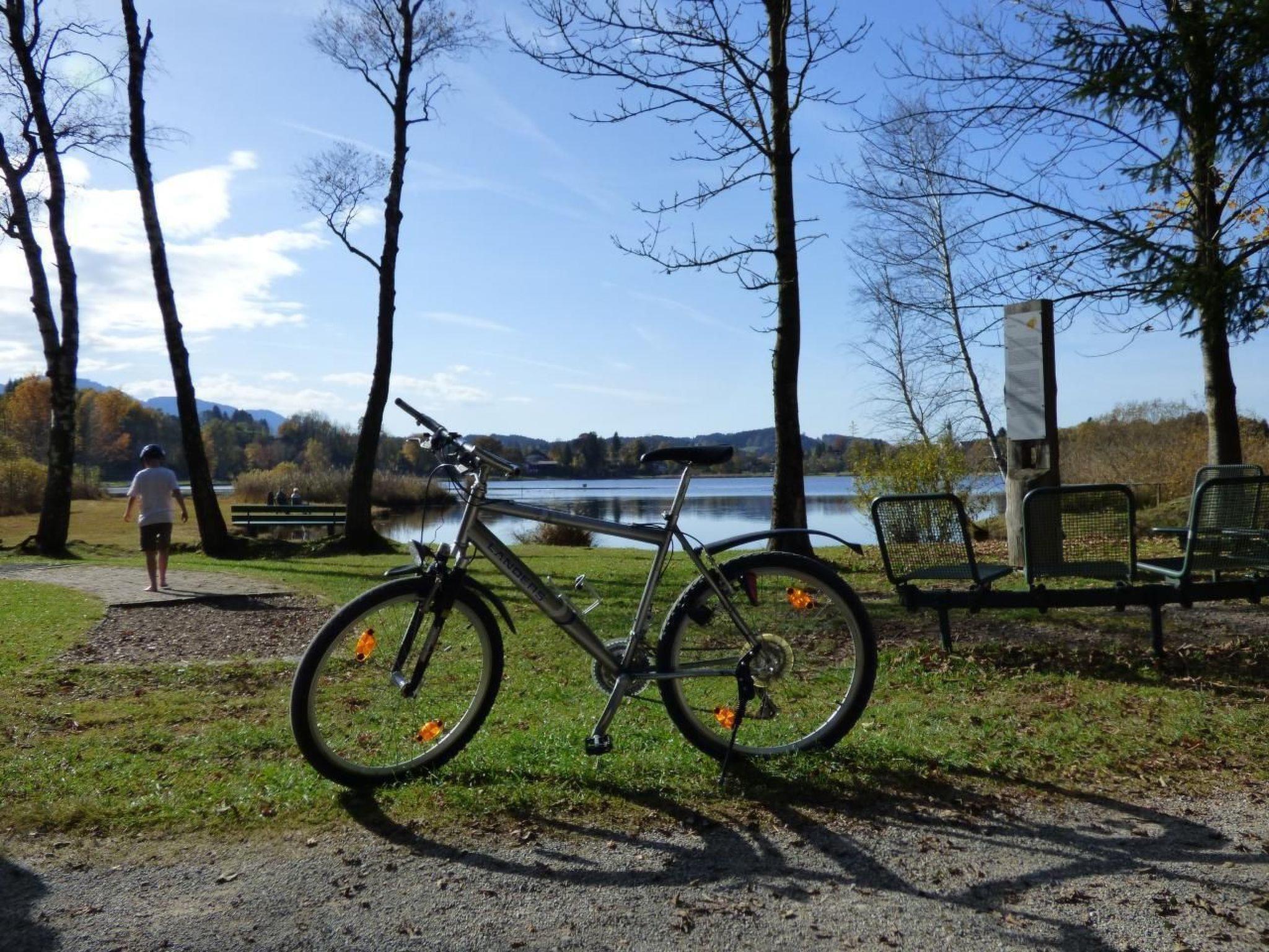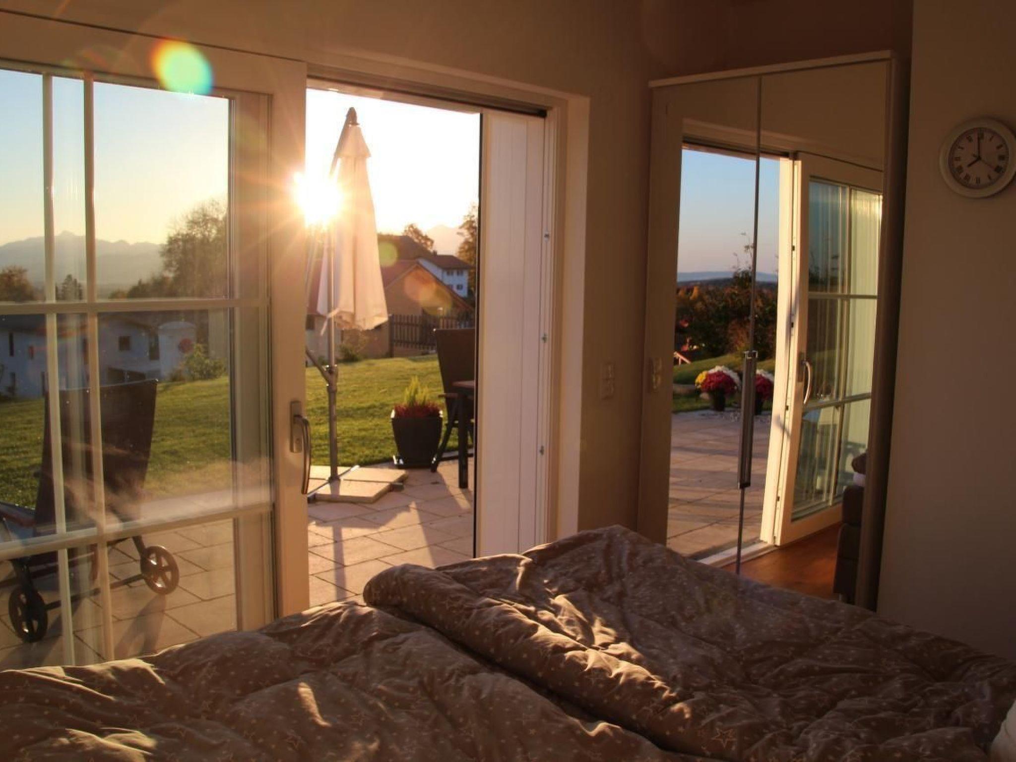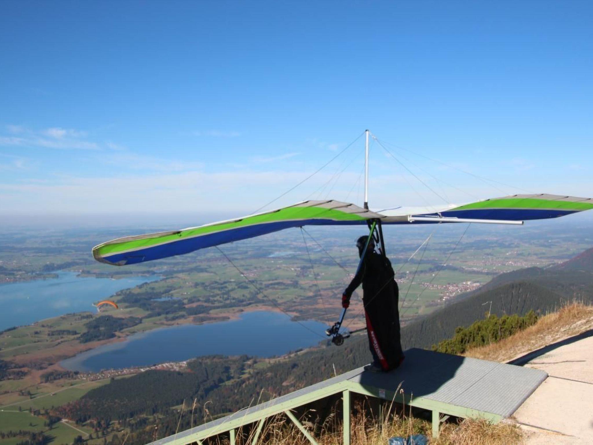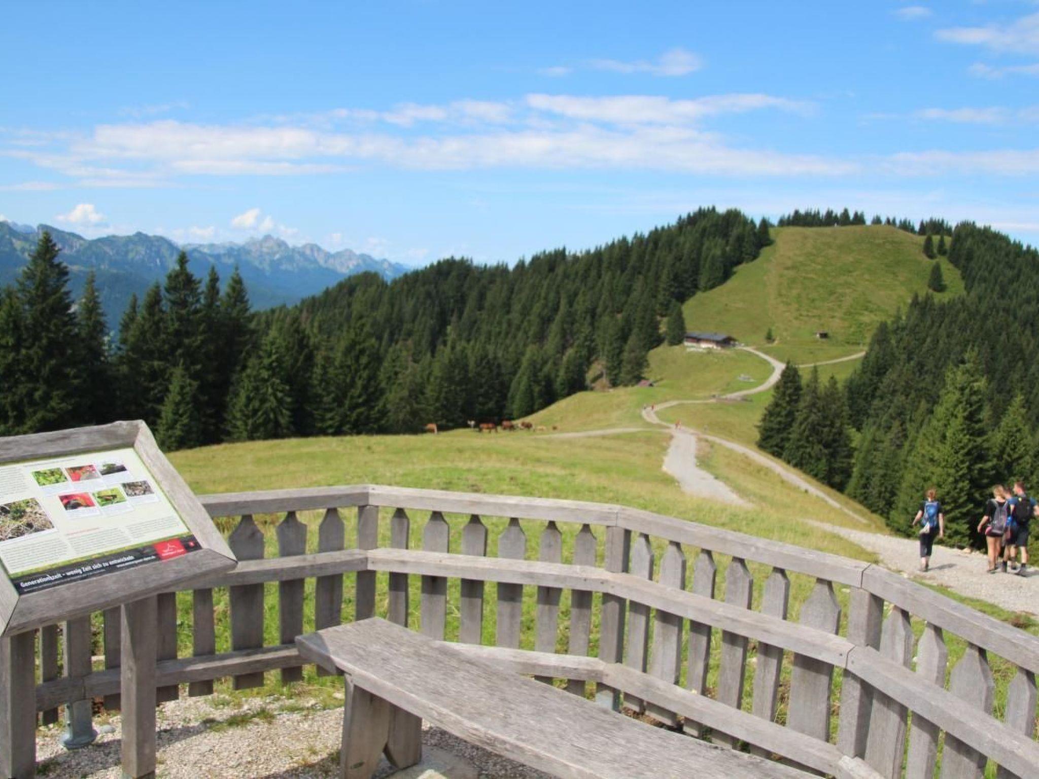 Vom Parkplatz aus, beim Blick auf Ihr Gartentor können Sie schon den phantastischen Ausblick erahnen. Wenn Sie dann durch das Gartentor auf die Abendterrasse gehen und um die Ecke auf die Frühstücksterrasse abbiegen, werden Sie sich über die große Terrasse und den weitläufigen Garten freuen. Aufgrund versetzter Häuser haben Sie eine angenehme Privatspäre auf der Terrasse. Ihre Kinder können unbekümmert im Garten spielen und sie brauchen aufgrund des 1 m hohen Holzzauns zu den Nachbarn keine Angst zu haben, dass Sie in "Nachbarsgarten" laufen. Geradeaus von der Terrasse ist der Blick auf das Ammertal und die Berge nicht durch einen Zaun gestört. Da das benachbarte, geradeaus liegende Grundstück nicht bebaut ist, hat man so einen wunderbaren Blick. Bei sehr kleinen Kindern ist daher eine Aufsicht notwendig.