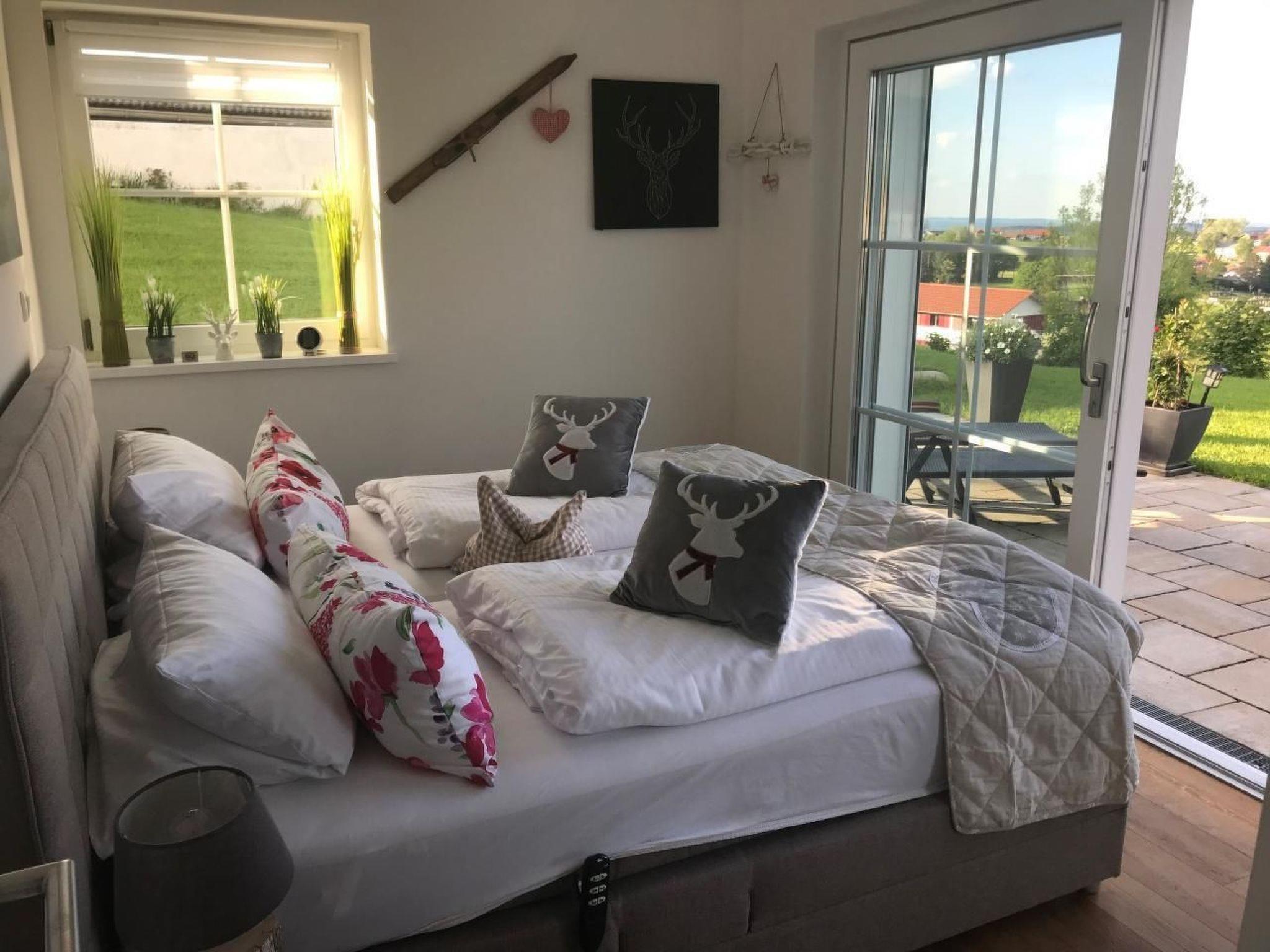 Danach haben Sie die Qual der Wahl zwischen zwei neuen gemütlichen und komfortablen Schlafzimmern, dem Schlafzimmer Fernblick mit elektrischem Boxspringbett, wo Sie am Morgen aus dem Bett den Sonnenaufgang über den Bergen beobachten können und bei offener Terassentür die Vögel zwitschern hören oder dem Schlafzimmer Ammertal mit Terrassenausgang und extrahohen orthopädischen Matratzen, in dem Sie zum Abschluss des Tages noch einen schönen Film auf dem Smart-TV oder eine DVD schauen können.