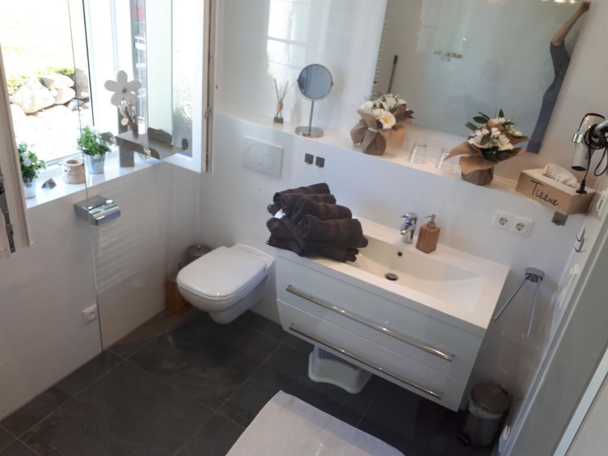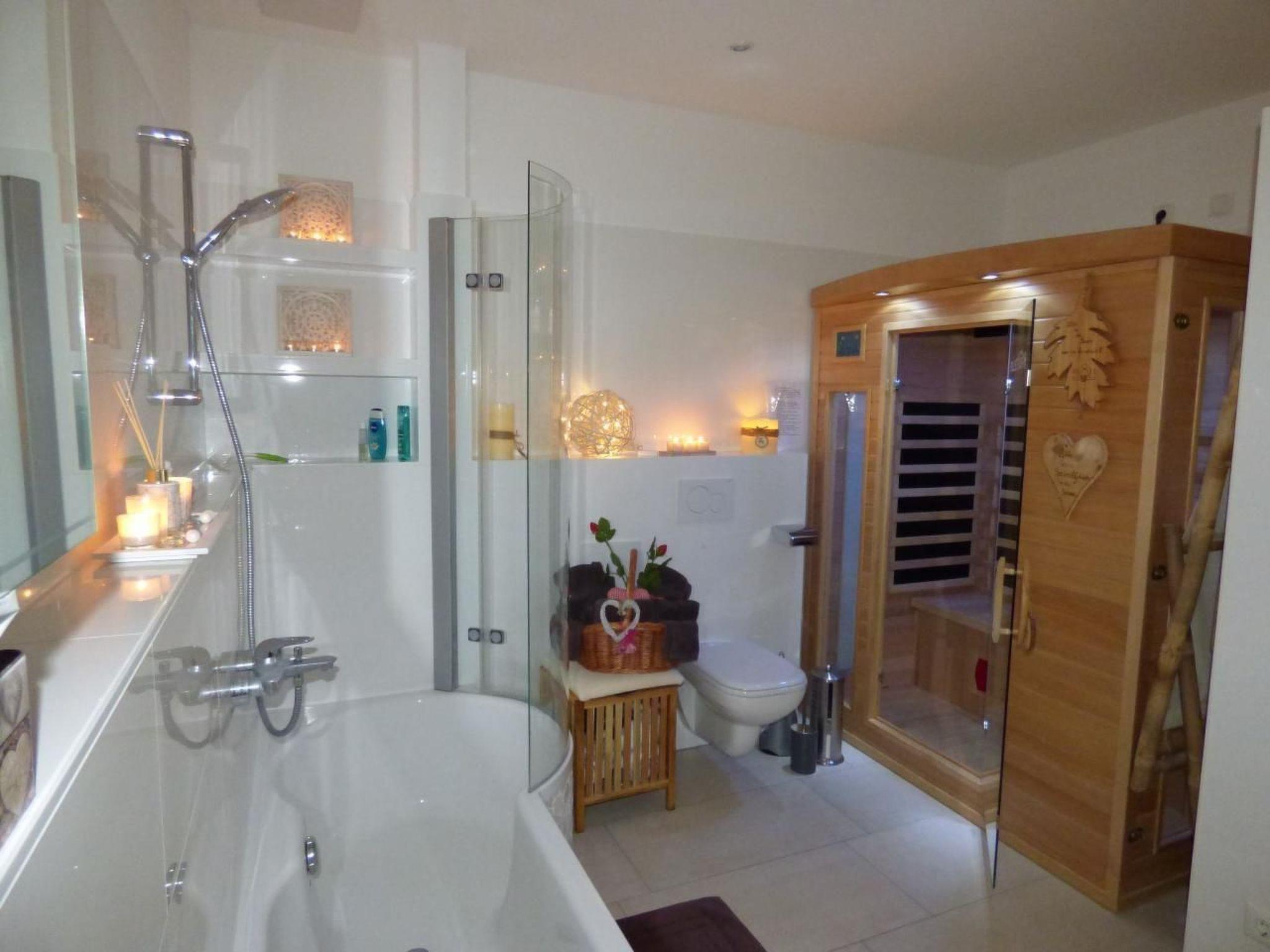 Lassen Sie nach einem erlebnisreichen Tag den gemütlichen Abend nach einem entspannenden Abendessen auf der Terrasse in der Abendsonne in Ihrer eigenen kleinen Wellnessoase mit Infrarotsauna, Luxusbadewanne und Entspanungsliege bei Kerzenschein ausklingen. Wer lieber den schnellen Badgang bevorzugt wird das zweite Bad, das helle Tageslicht-Duschbad mit großer bodentiefer Dusche lieben.