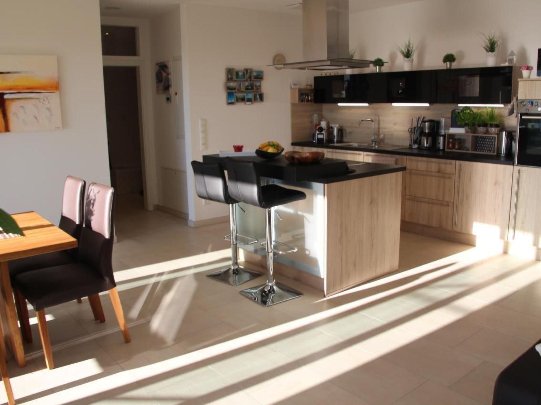 Hier lässt es sich wunderbar speisen, nachdem Sie Ihre leckere Mahlzeit in der neuen sehr komfortabel und umfangreich ausgestatteten Luxus Einbauküche mit Markeneinbaugeräten, Theke für einen leckeren Apperitiv und einer Kochinsel mit wunderschönem Ausblick beim Kochen, zubereitet haben.