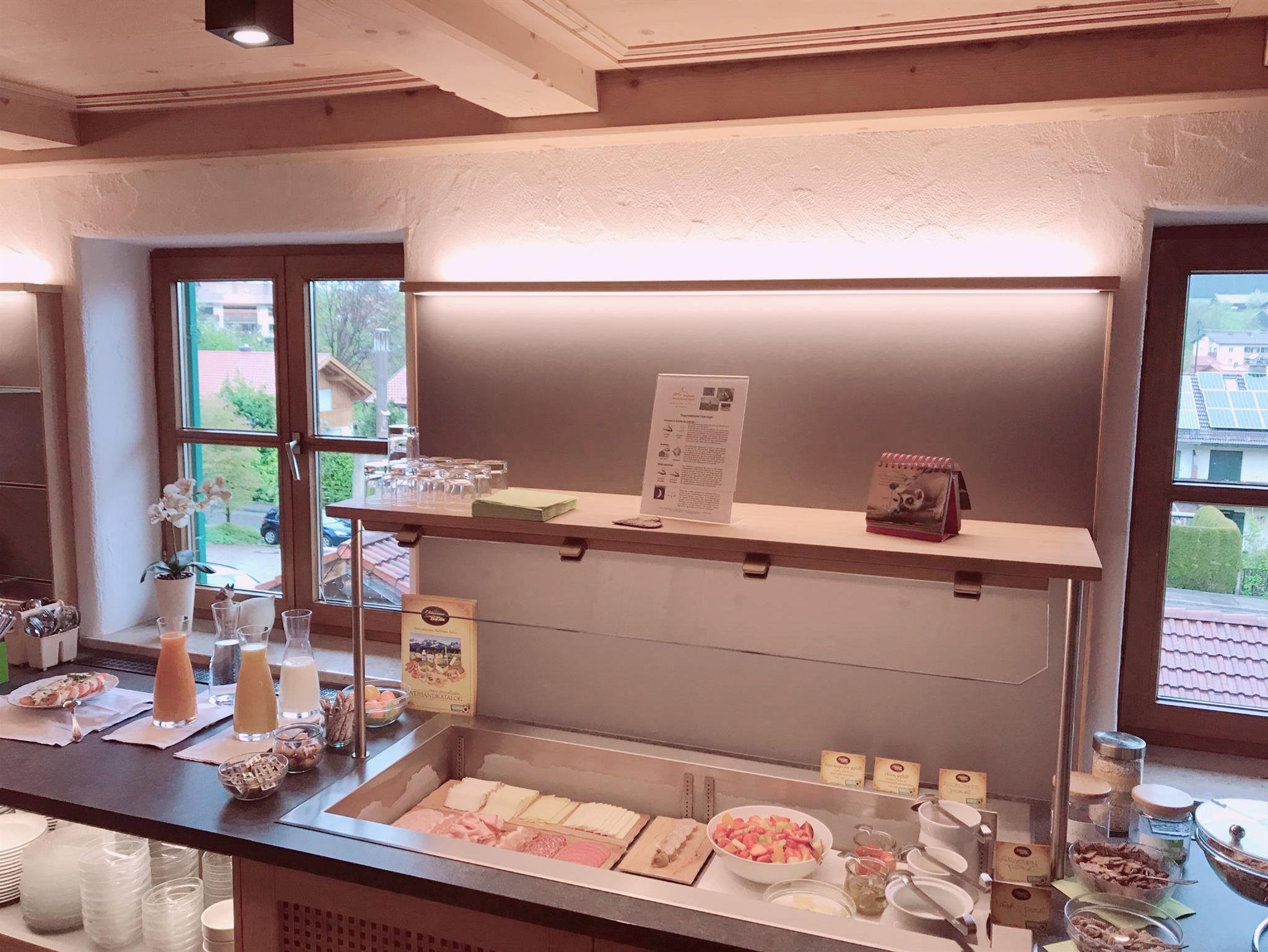 Die Gäste in den Fewos erhalten jeden morgen frische Semmeln an die Türe, spontane Teilnahme am Frühstücksbuffet ist jederzeit zubuchbar (gegen Gebühr).