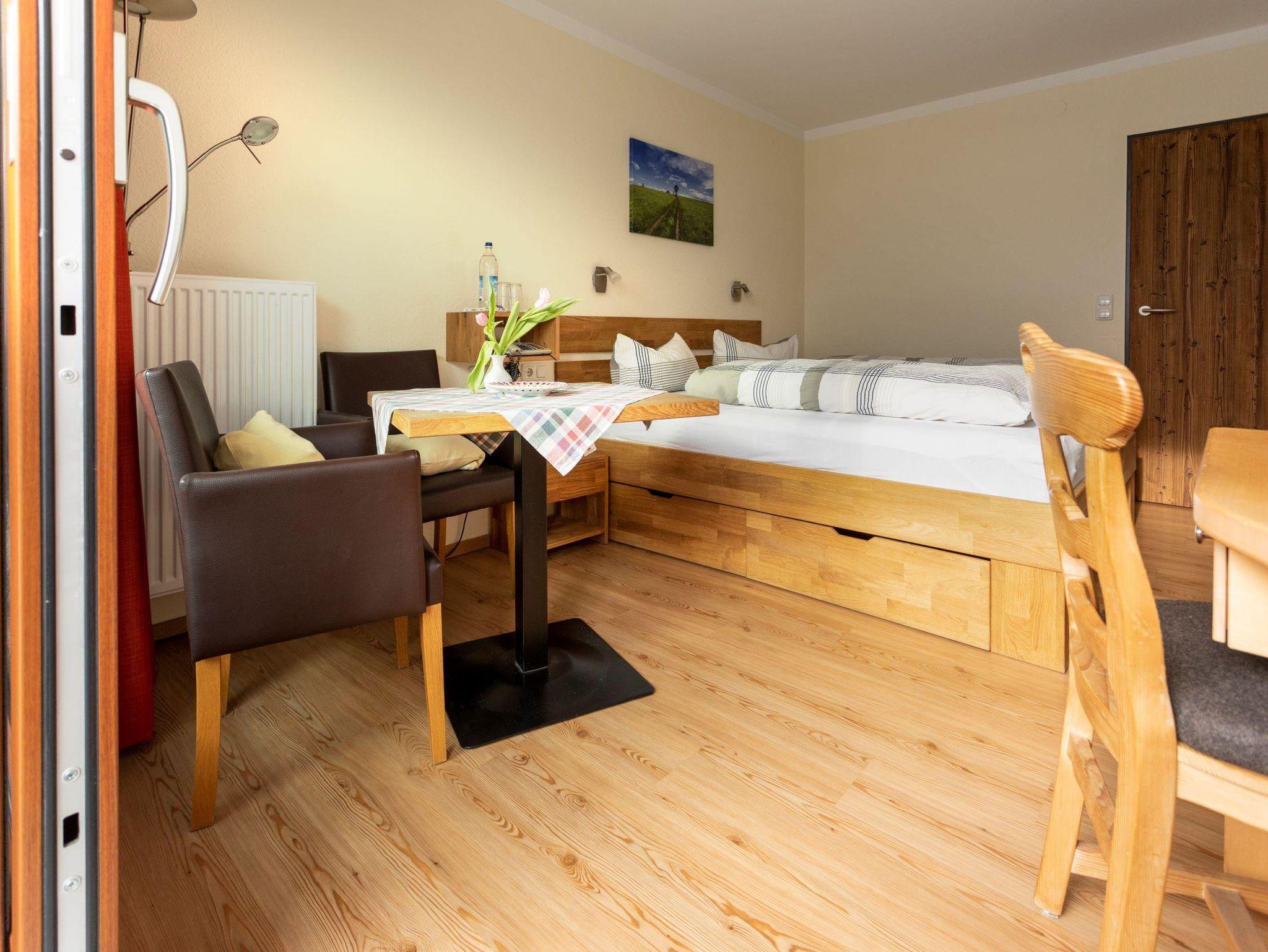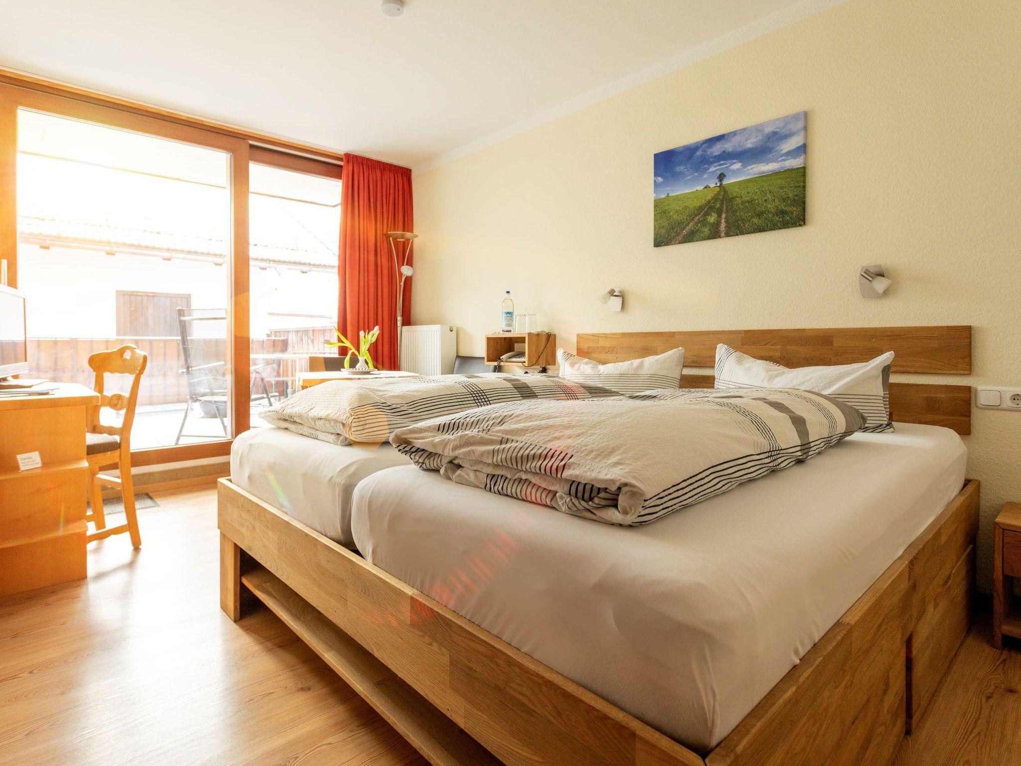 Ausgestattet sind unsere Zimmer mit einem schönen Bett, Schrank, Sessel, Stuhl und Tisch, Flachbild TV, Telefon, Wlan, sowie separatem Balkon mit Bestuhlung. Genießen Sie ein abwechslungsreiches Buffet in unserem neuen Frühstücksraum und starten Sie mit verschiedenen Kaffeespezialitäten oder Tee in den Tag. Es sind nur wenige Meter zu den Einkaufsmöglichkeiten und Restaurants. Auch der Kurpark sowie die Wanderwege lassen sich in wenigen Minuten erreichen.