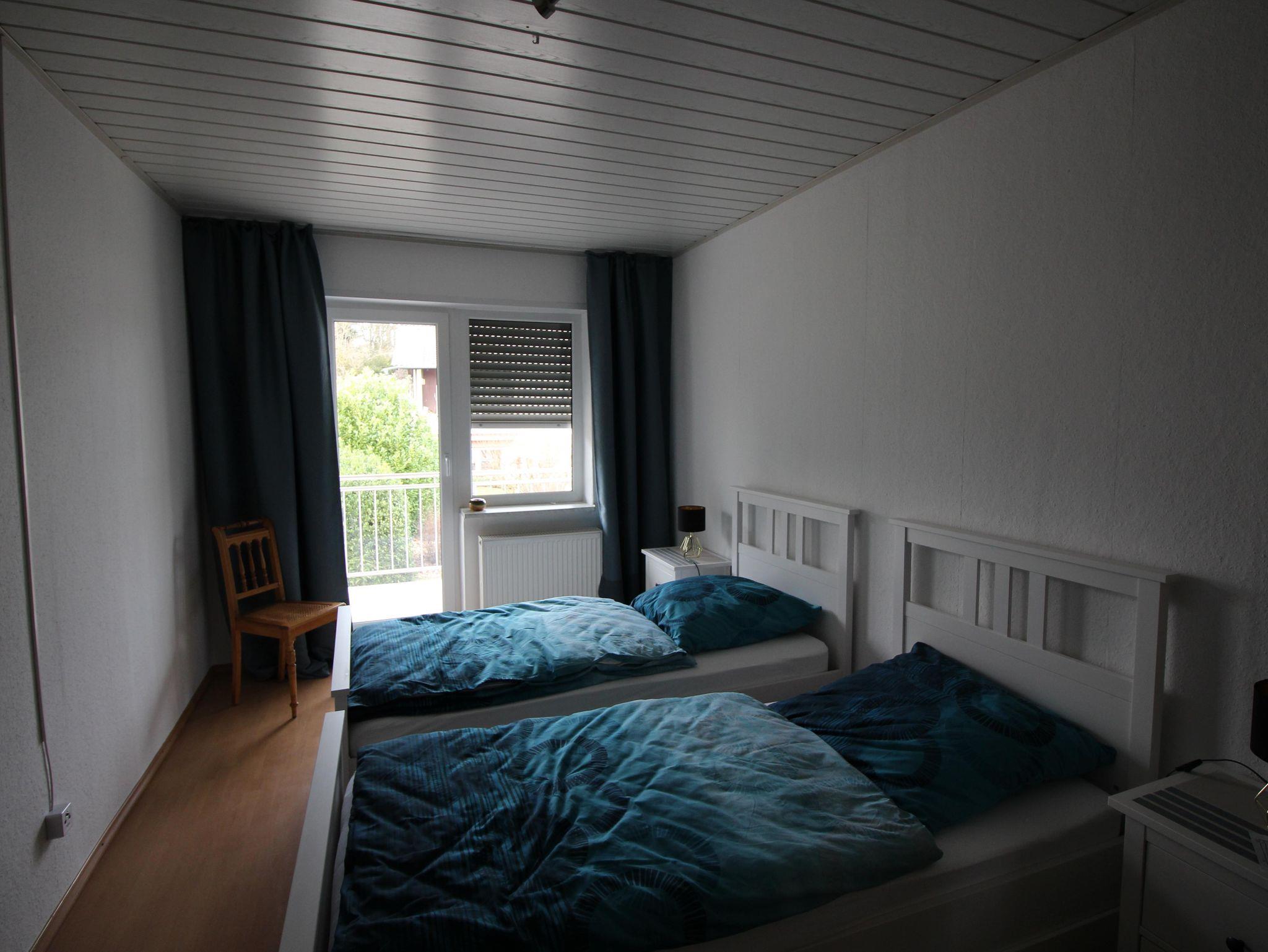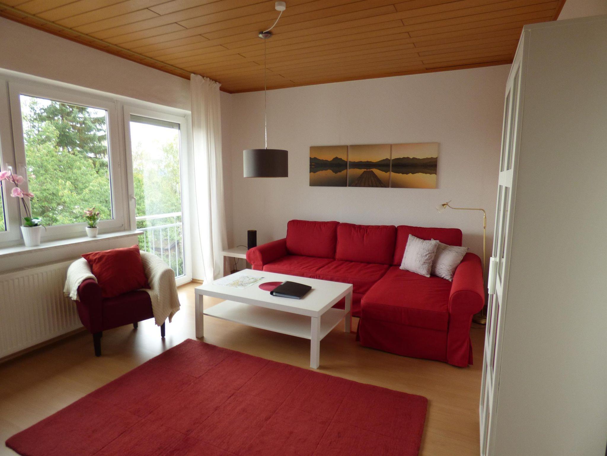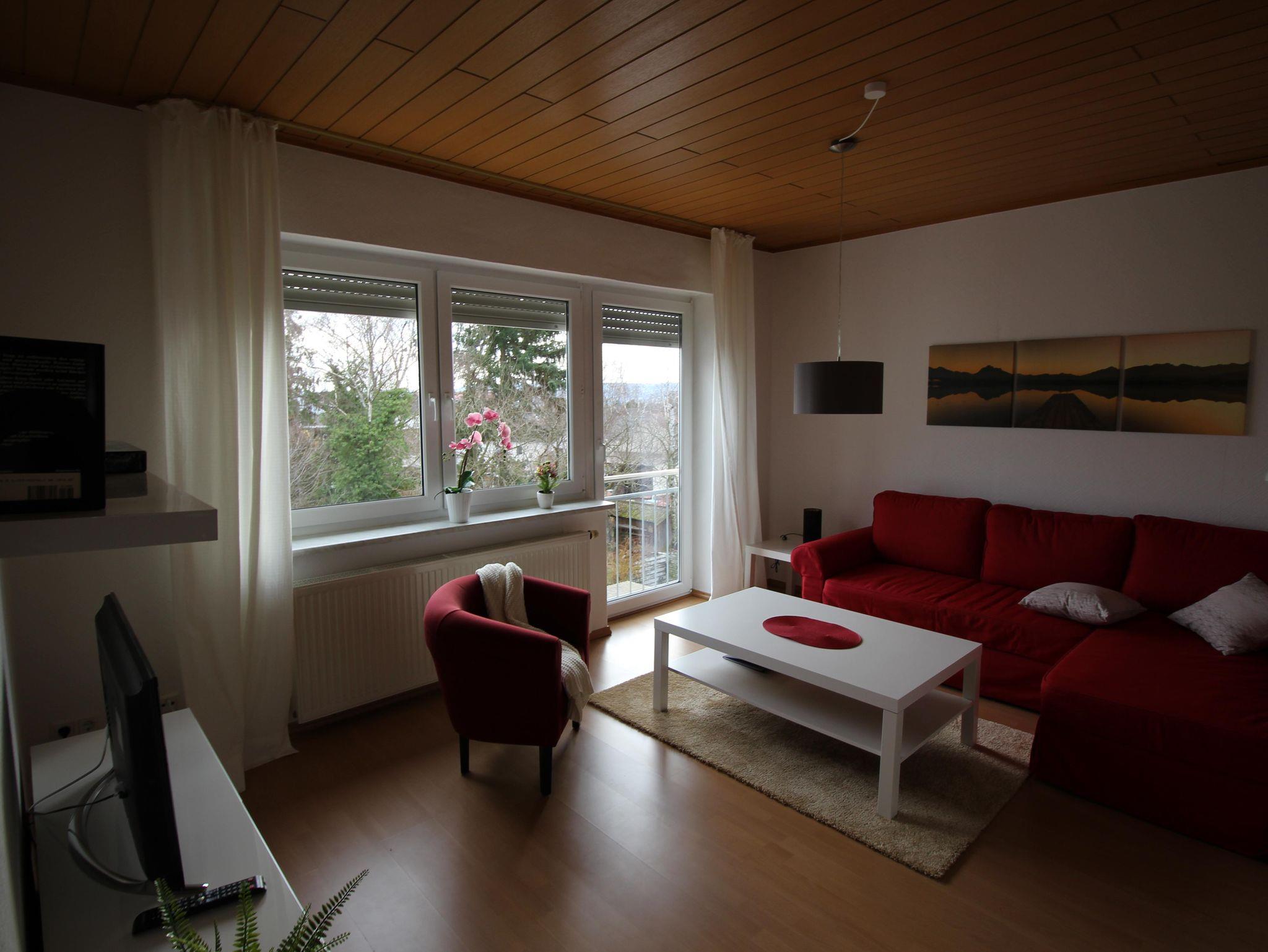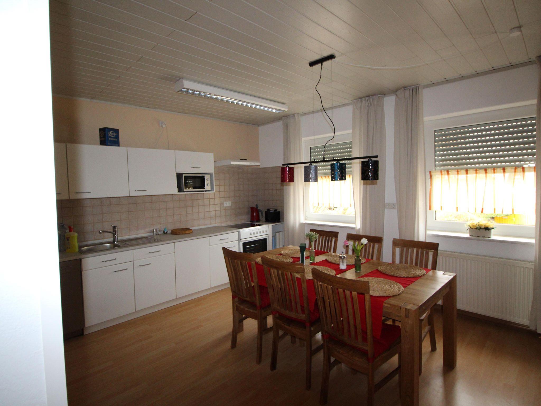 1.OG, sep. Eingang, komfortabel und modern eingerichtet. 2 Schlafzimmer, Wohnzimmer, geräumige Küche mit gr. Eßtisch, Bad, Diele, Balkon.