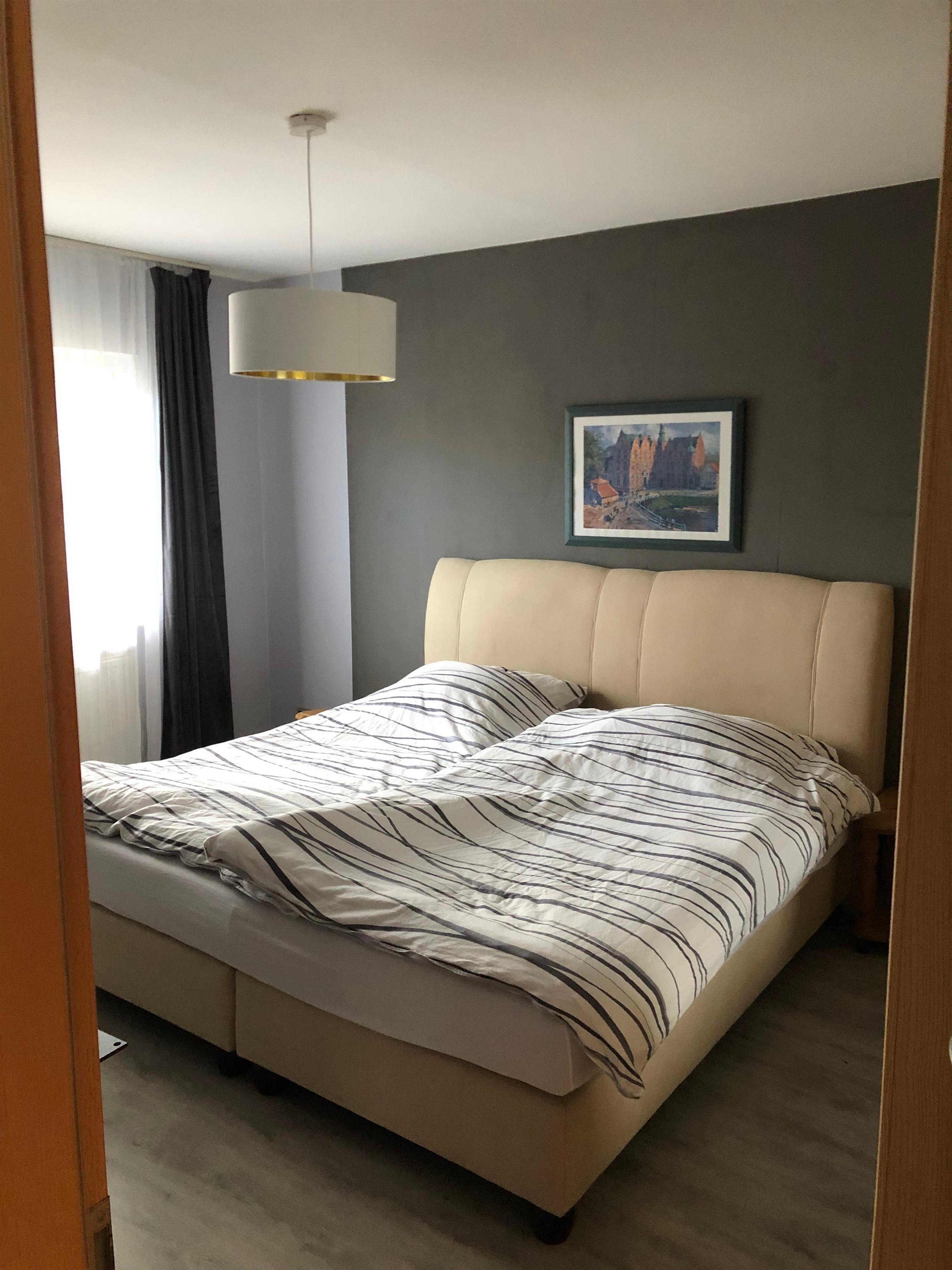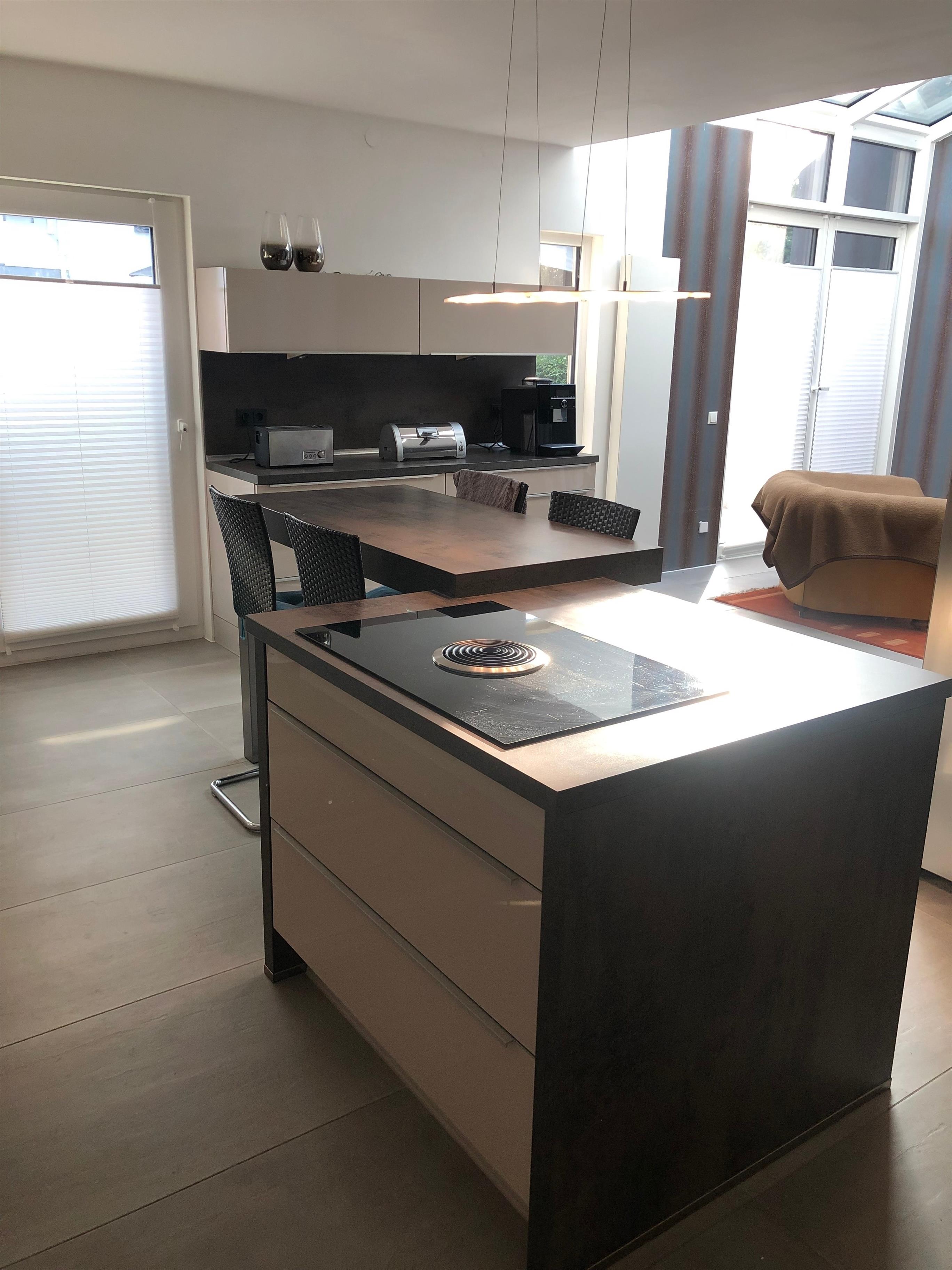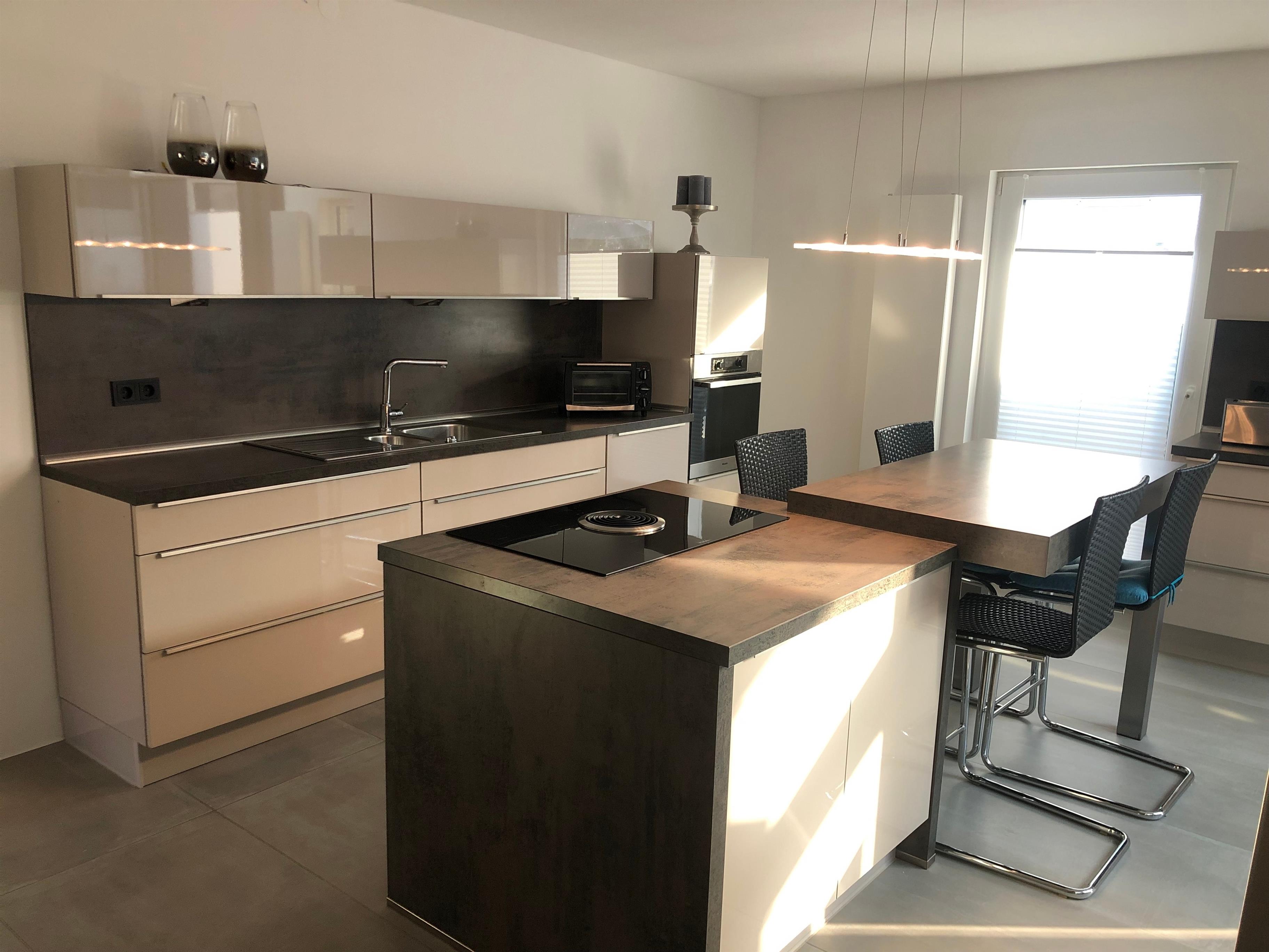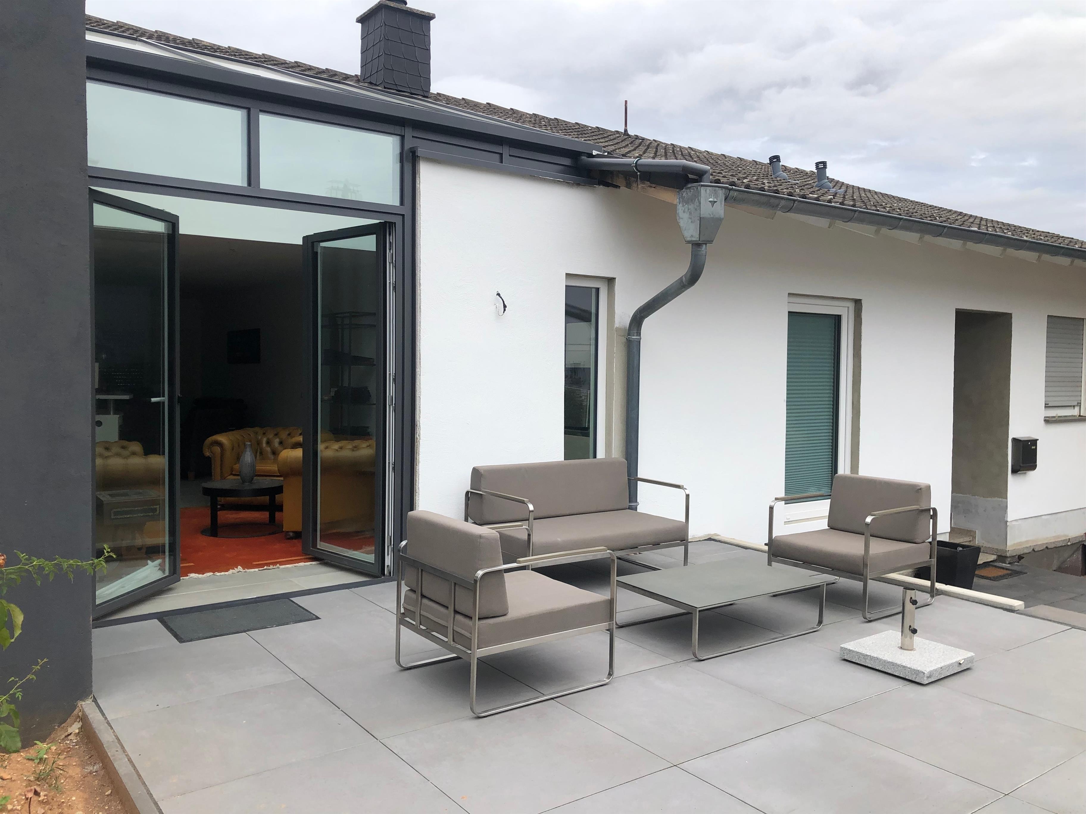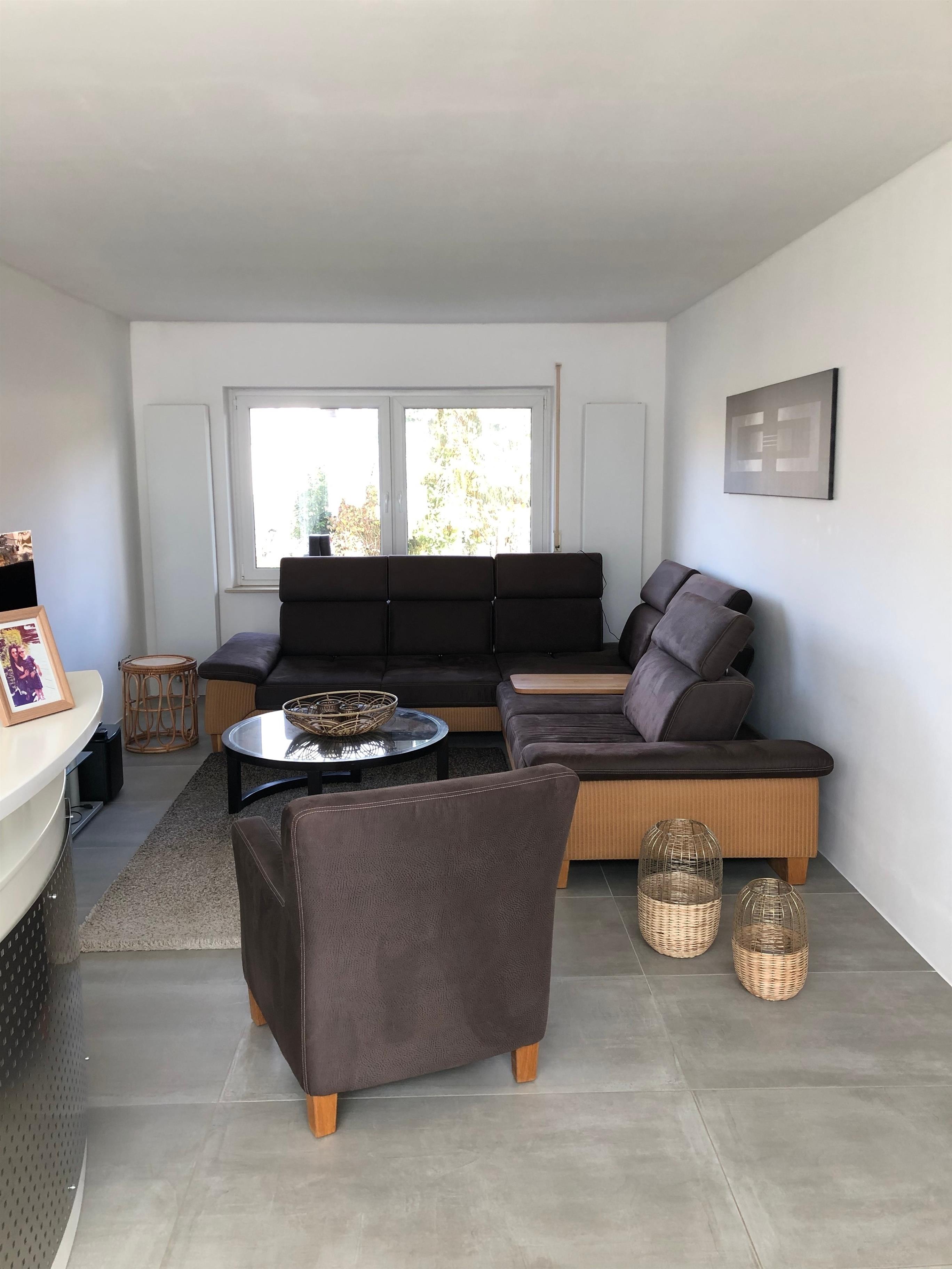 Die Wohnung im Erdgeschoß unseres Einfamilienhauses ist neu renoviert. Der Garten wird neu angelegt, der Rasen wird noch eingesäht.