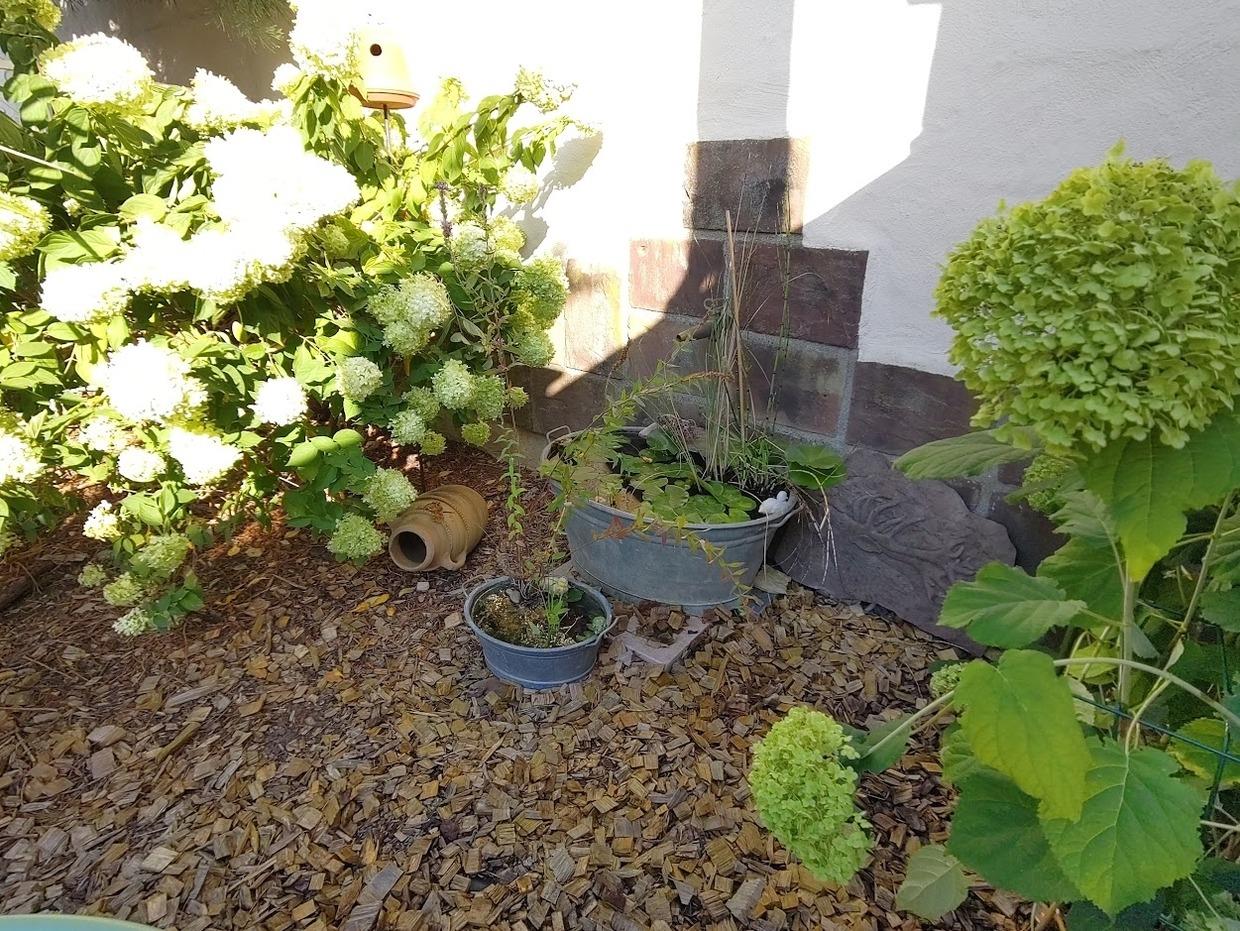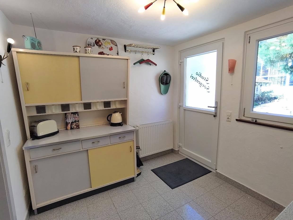 Das 2019 ausgebaute Studio im Anbau unseres Hauses befindet sich im Gartenbereich unseres Grundstückes, direkt davor befindet sich eine kleine Terrasse zum gemütlichen Verweilen.