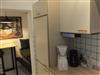 Küche mit Spüle, Dunstabzug, 4-Plattenherd, Backofen, Mikrowelle, Kaffeemaschine, Wasserkocher, Kühl-/Gefrierkombination