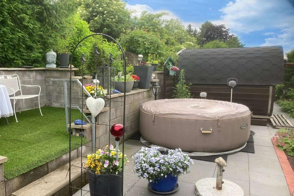 Top Nichtraucher-Ferienwohnung mit allem was dazu gehört. Kinder und Tiere gerne. Ebenerdiger Eingang mit Eingang & Terrasse. 1 Wohnzimmer mit Essplatz, Sitzgruppe und TV. 3 Schlafzimmer: zwei jeweils mit Doppelbett und 2 Einzelbetten, eins mit 2 Einzelbetten (können zusammengestellt werden) und einem Kinderbett;. Es gibt zwei Küchen, zwei Bäder mit Dusche & WC, Waschmaschine & Trockner. Wunderschöner Garten; PKW-Stellplätze direkt am Haus.
