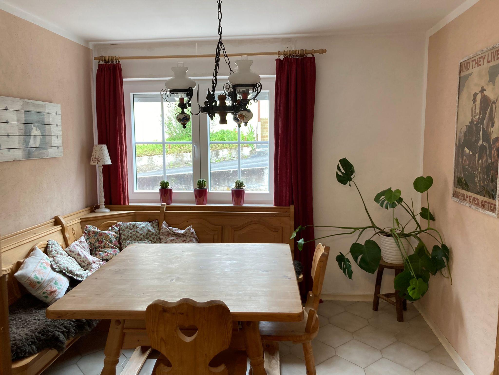 Im EG befindet sich ein gemütliches Esszimmer mit Eckbank, einem separaten Wohnzimmer mit einem Schlafsofa (1,40/2,00m) und einem Schlafsessel (0,90/2,00m) und die Küche.