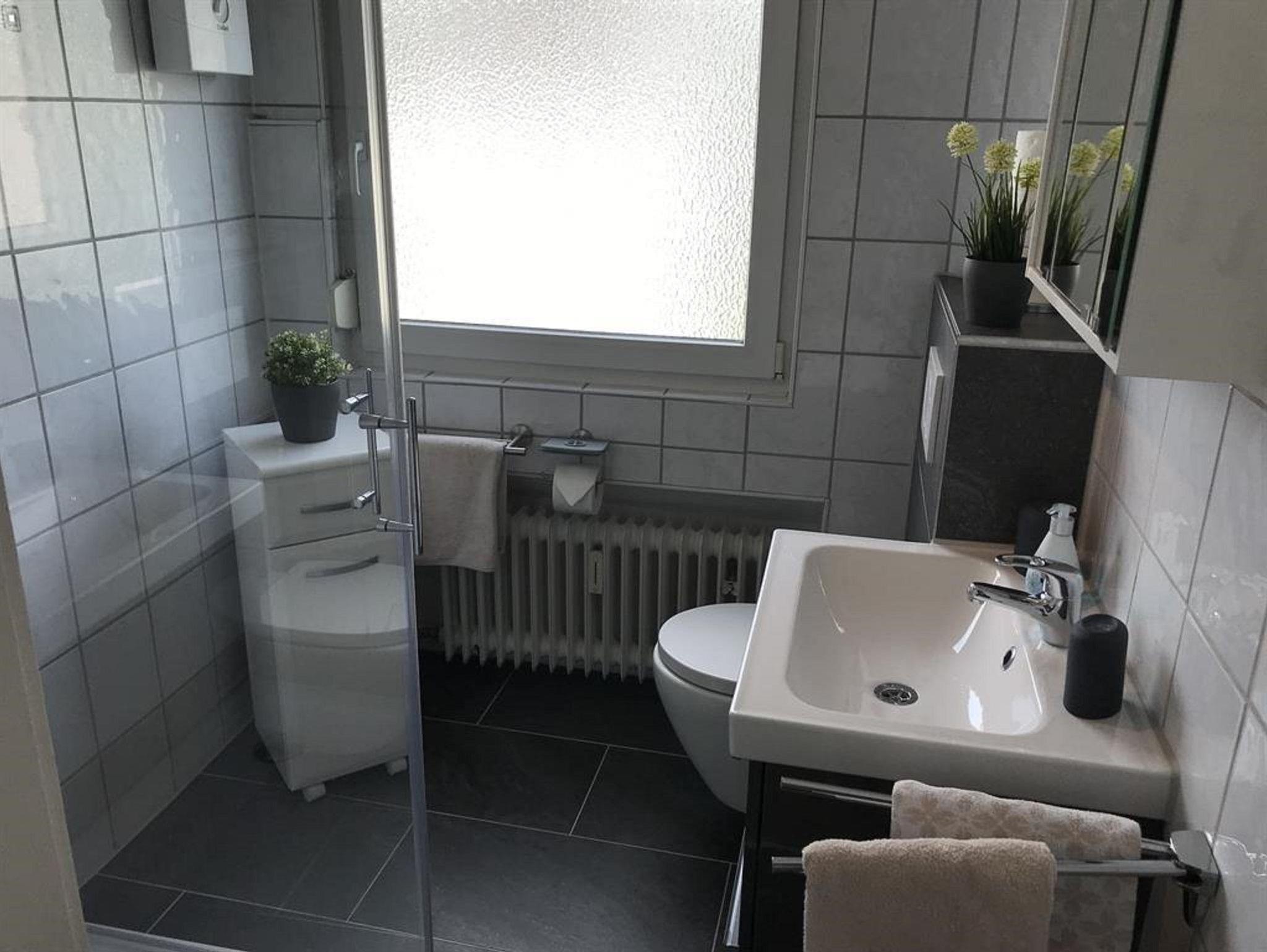 Das Badezimmer mit Tageslicht bietet neben WC und Waschbecken auch eine Dusche, um sich den Staub von Anreise und Ausflügen bei ihrem Aufenthalt in Bad Neuenahr abzuwaschen und sich für den kommenden Tag wieder frisch zu machen. Alle sanitären Elemente in unserer Ferienwohnung in Bad Neuenahr sind modernisiert.