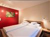 Die Wohnung ist in ansprechenden Weinrot- und Beigetönen gestaltet, was eine wohlige und warme Atmosphäre schafft. Sie finden zwei geräumige Schlafzimmer: Das erste Schlafzimmer ist mit einem komfortablen Doppelbett ausgestattet, während das zweite Schlafzimmer zwei Einzelbetten (100 x 200 cm) bietet. Große Schränke in beiden Schlafräumen sorgen für ausreichend Stauraum.