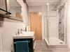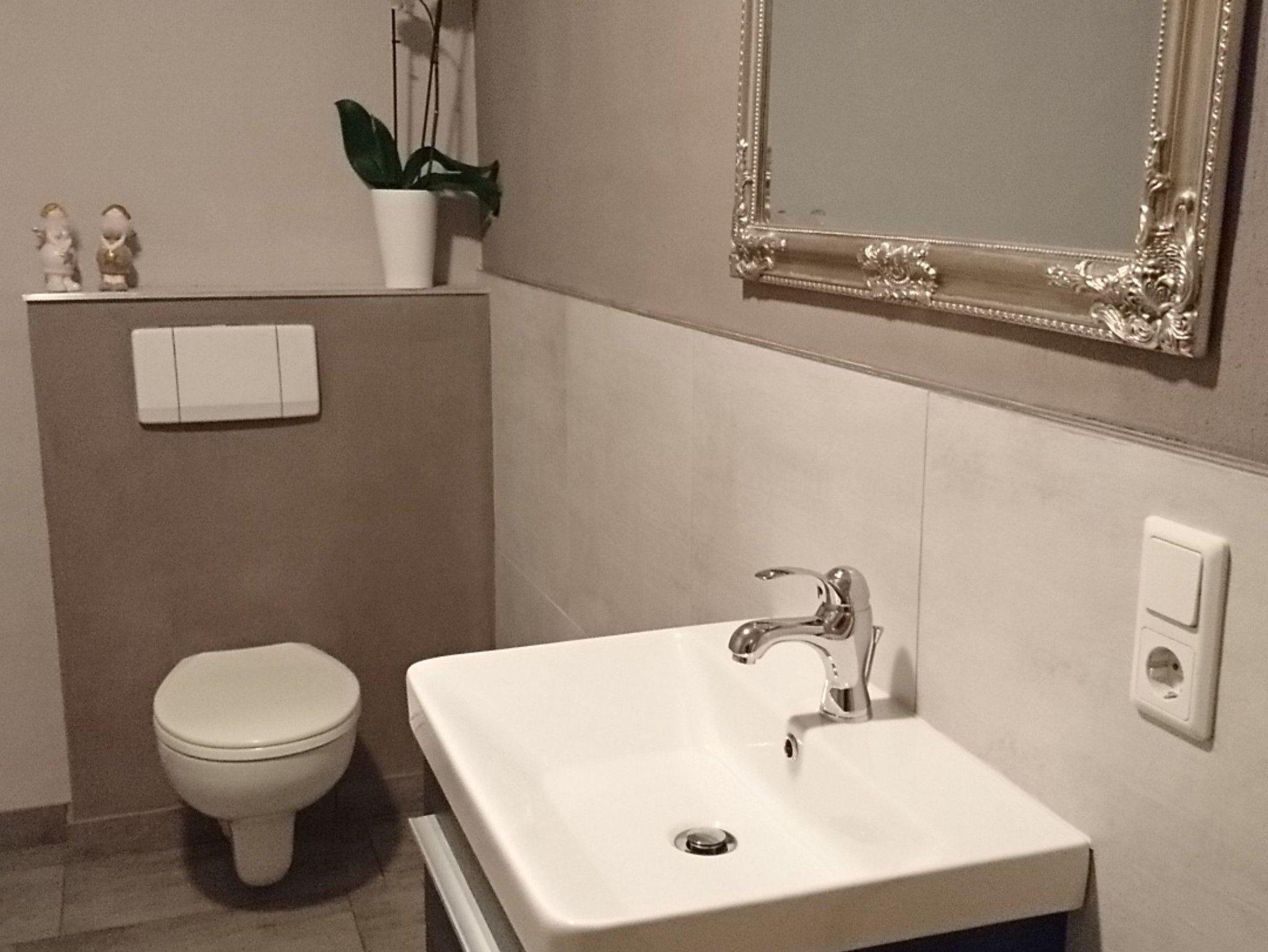 Das Wohlfühlbad bietet u.a. eine große Regendusche und Kosmetikkommode, Fön.