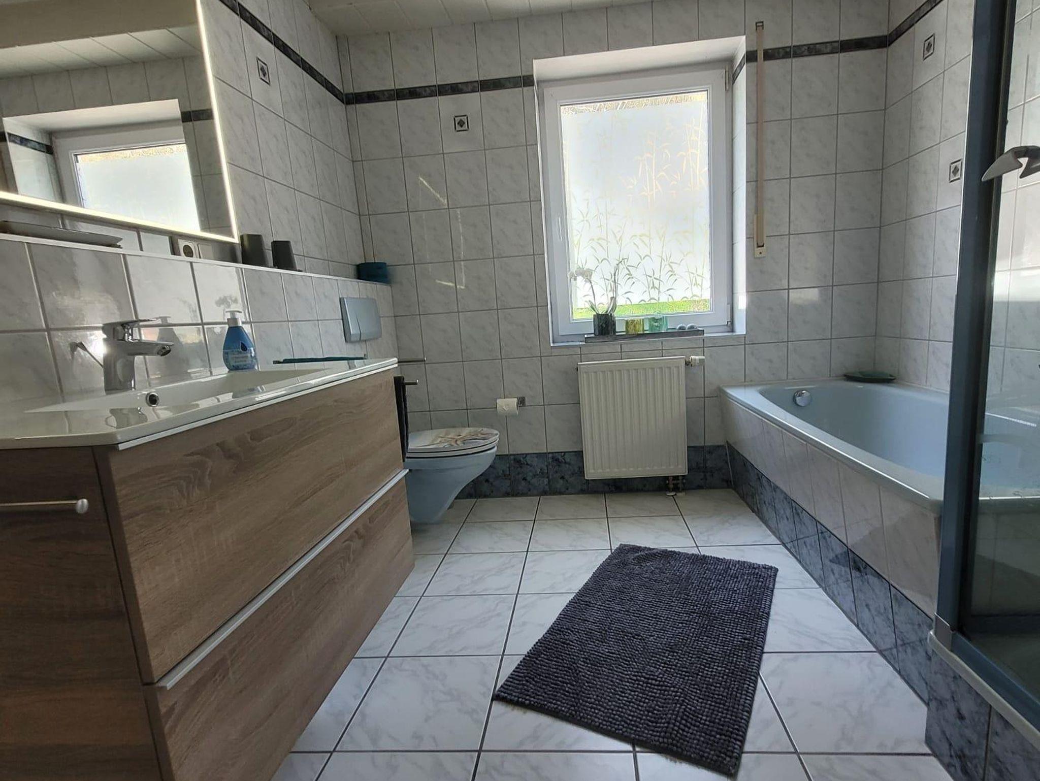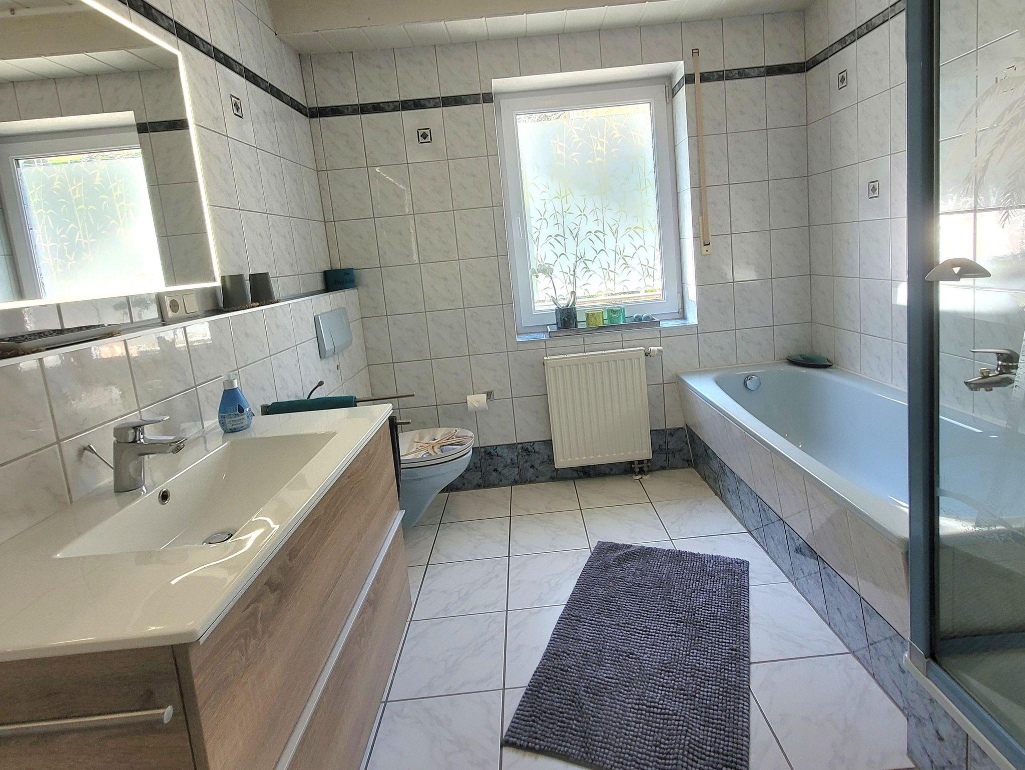 Im Wohlfühlbad steht den Gästen eine Badewanne und Dusche zur Verfügung.