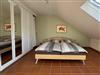 Das separate Schlafzimmer verspricht mit einem komfortablen Doppelbett (1,80 x 2,00 m) erholsame Nächte. Das moderne Badezimmer ist mit einer Dusche ausgestattet und rundet das stimmige Gesamtbild dieser charmanten Dachwohnung ab.
