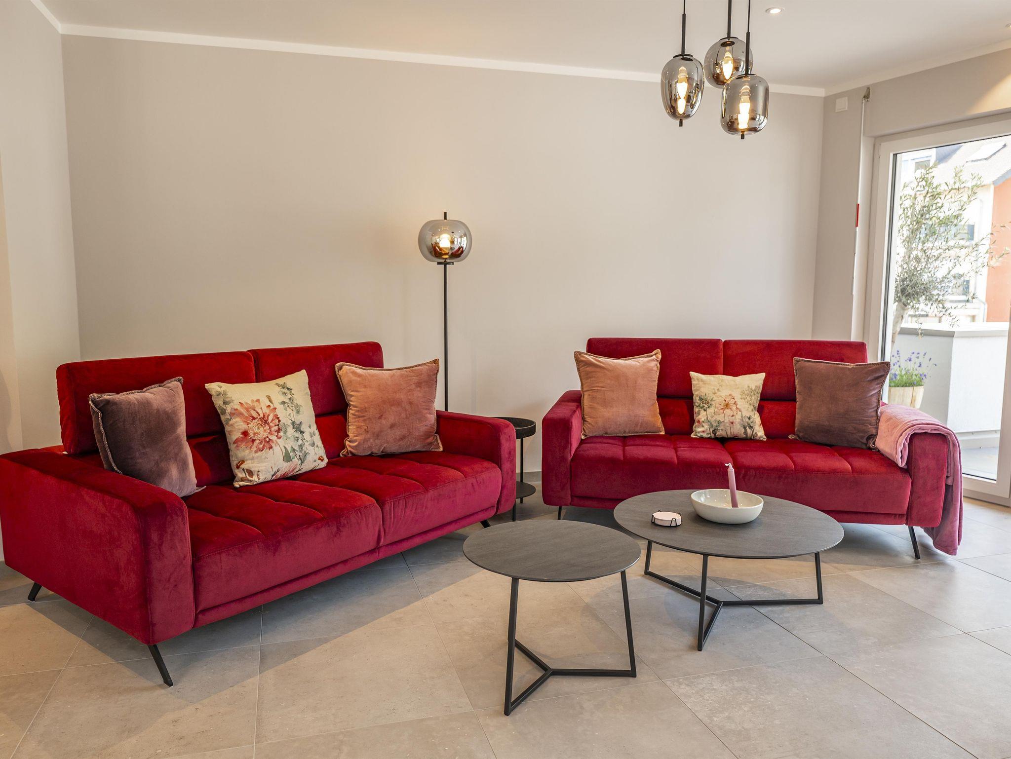Das Apartment ist lichtdurchflutet, hochwertig ausgestattet und ideal für Familien, Paare, kleine Gruppen oder Geschäftsreisende. Genießen Sie Ihren Morgenkaffee auf dem Balkon mit Panorama-Aussicht – oder ein Glas unseres Ahrweins zum Sonnenuntergang.