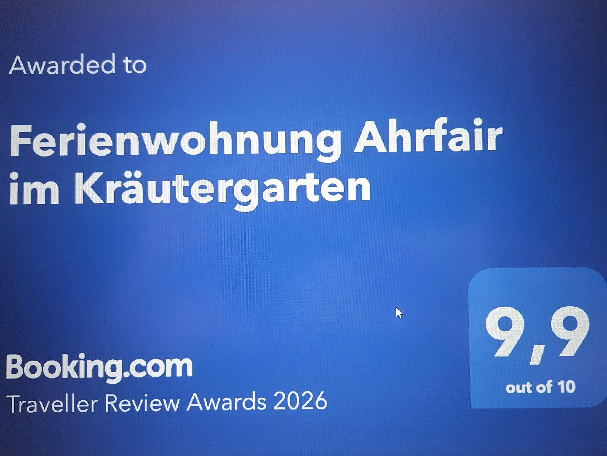 Die 5 Sterne- Ferienwohnung Ahrfair im Kräutergarten (Booking Award 2026) befindet sich in Bad Neuenahr-Ahrweiler, direkt an der Ahr und eingebettet in einen idyllischen Kräutergarten. Gäste sind eingeladen, die vielfältigen Kräuter für die Zubereitung ihrer Speisen zu nutzen oder aromatische Kräutertees daraus zu bereiten. Bei Sonnenschein erfüllt der Duft ätherischer Öle der Kräuter und Zitrusblüten die Luft.