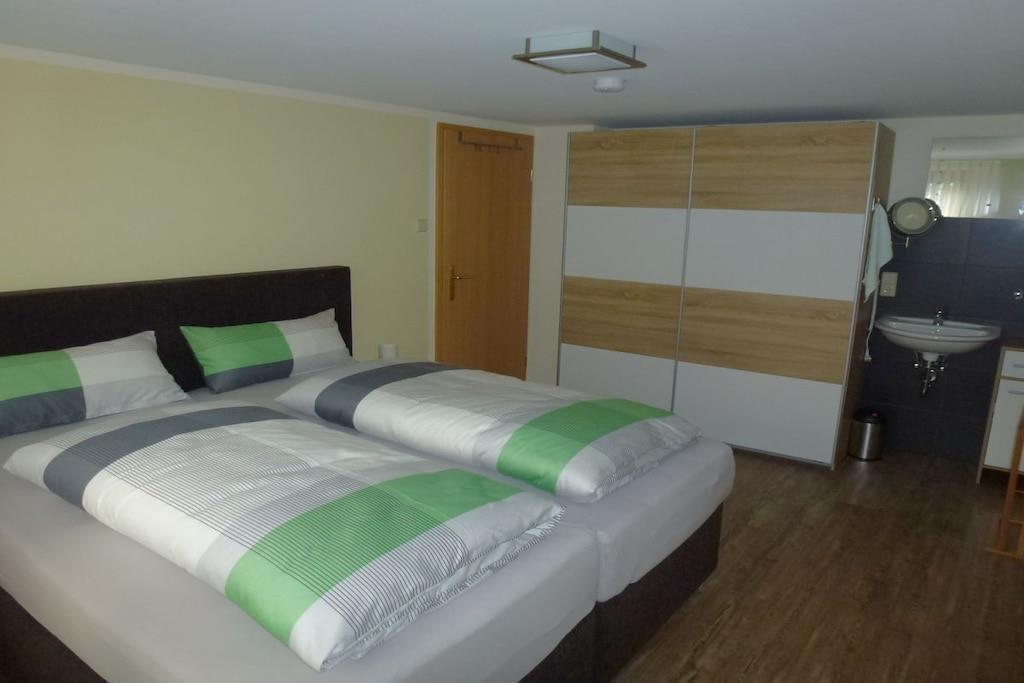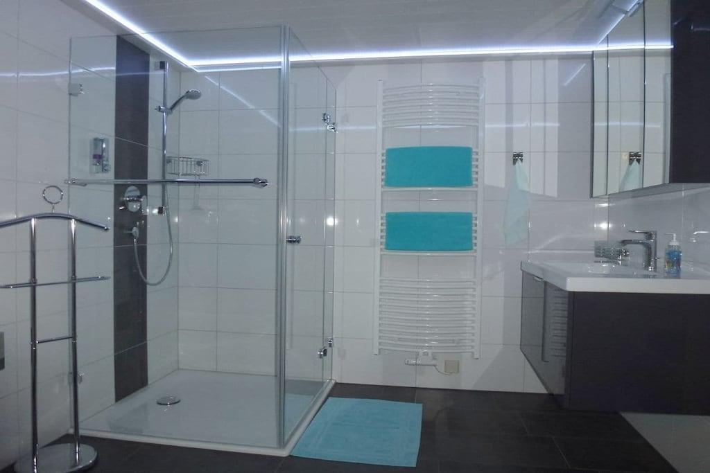 Es erwartet Sie eine erstklassige modern eingerichtete Ferienwohnung mit 70qm + 16 m² überdachter Freisitz + Liegewiese. Zusätzlich steht ihnen unser Bike- und Skiraum zur Mitbenutzung bereit. Die Wohnung verfügt über 2 separate Schlafzimmer 1 Wohn- Esszimmer, 1 Badezimmer mit 2 Deckenlautsprechern über die Sie schon morgens Ihre Lieblingsmusik hören können. Handtücher groß und klein sind in 4 verschiedenen Farben vorhanden (je Person eine Farbe:-)). Eine voll ausgestattete hochwertige "Nolte" Küche mit Geschirrspüler, Mikrowelle, Ceran-Kochfeld, Backofen, Kühlschrank, Gefrierschrank, Kaffeemaschine, Eierkocher, Toaster und auch eine Grundausstattung an Gewürzen ist vorhanden, so das für den Küchenalltag nichts fehlen dürfte.