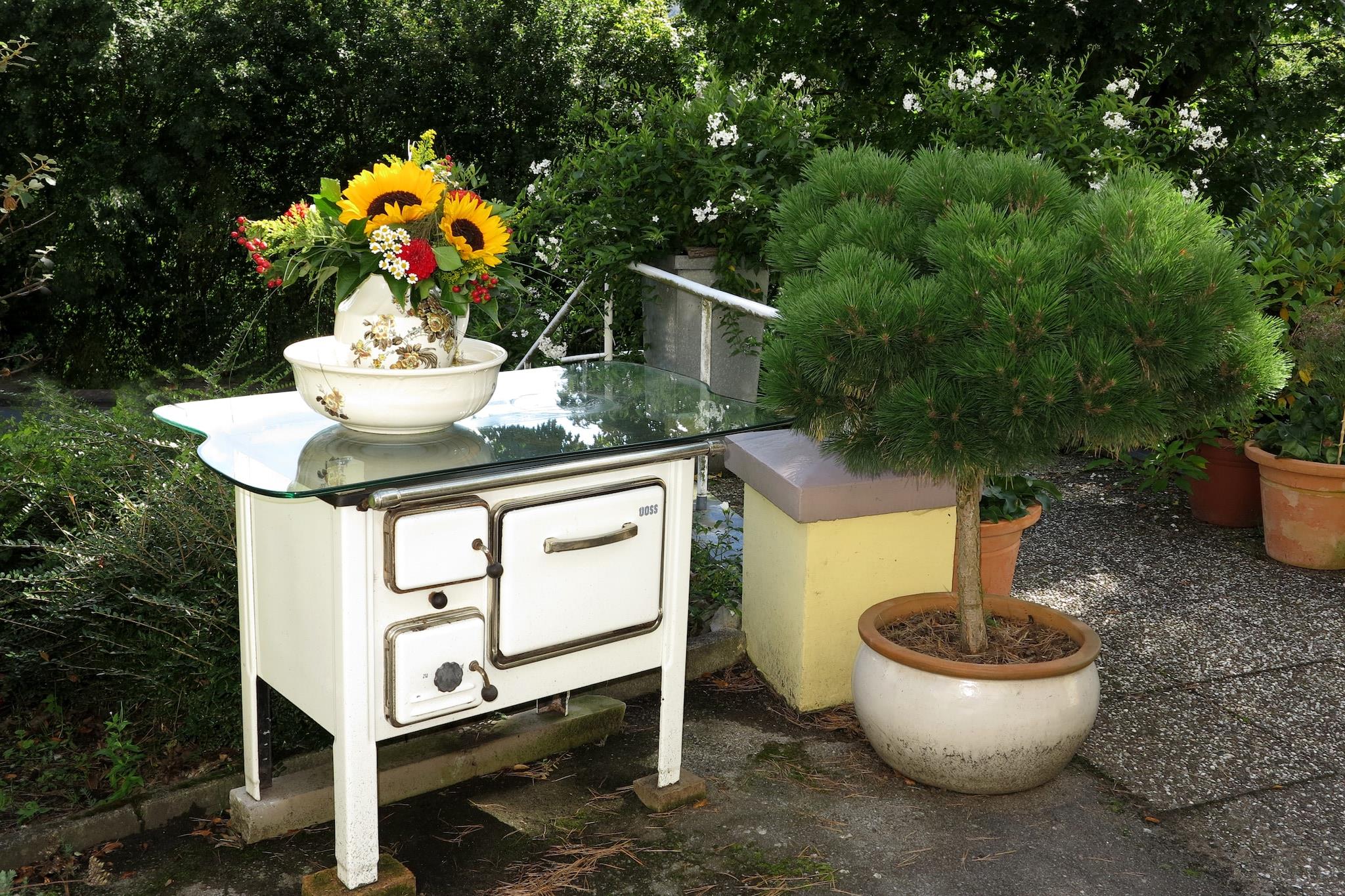 In der 1. Etage: (Wohnzimmer(TV(Satellit), Stereoanlage), Wohnküche(Kochherd(4 Kochplatten, Ceranfeld, elektrisch), Kaffeemaschine(Filter), Backofen, Mikrowelle, Kühlschrank), Schlafzimmer(Doppelbett), Badezimmer(Badewanne, Dusche, Waschbecken, Toilette)) Fitnessraum(Gemeinschaftliche Nutzung mit anderen Gästen), Balkon, Gartenmöbel, Kinderbett, Hochstuhl