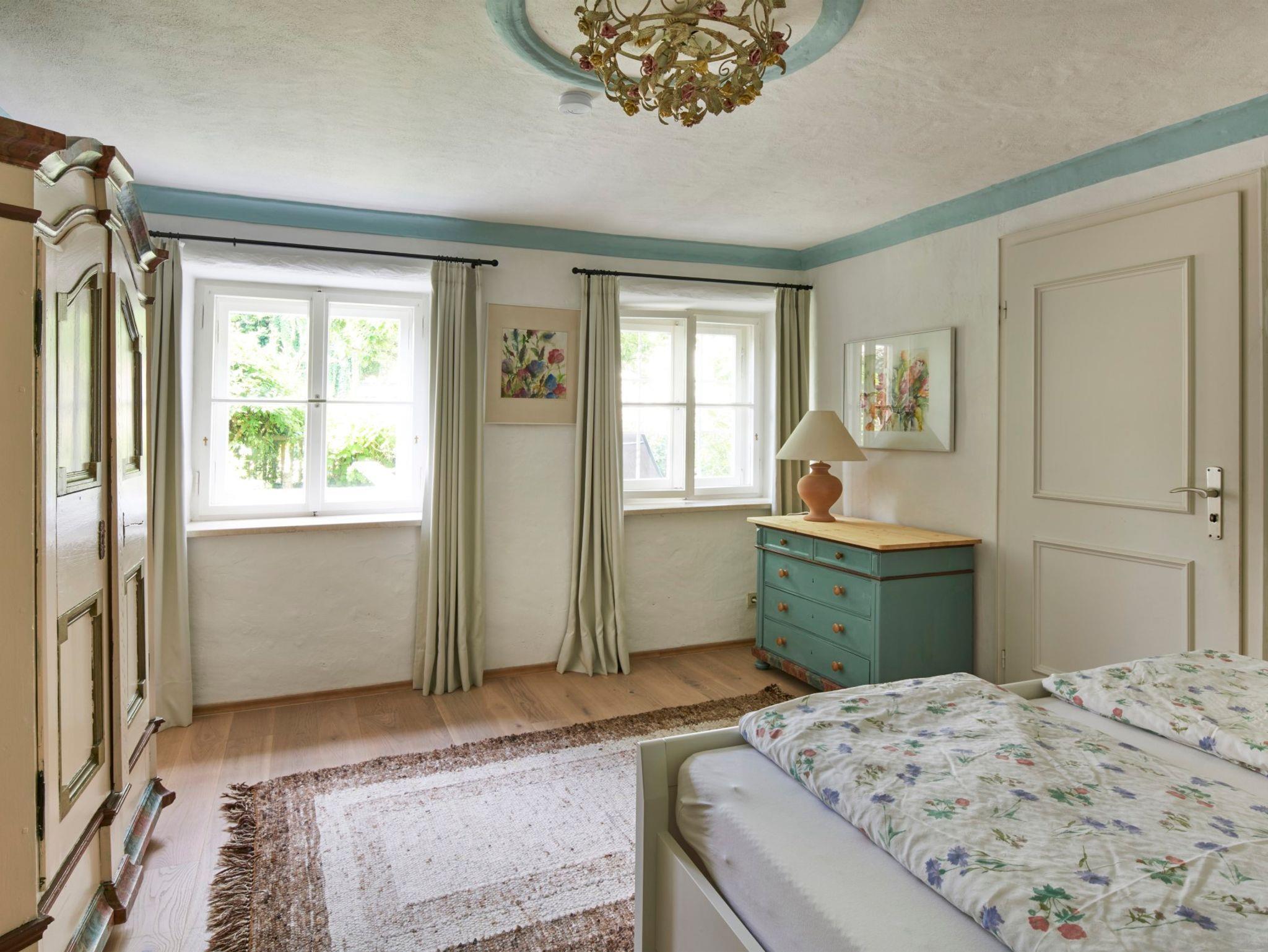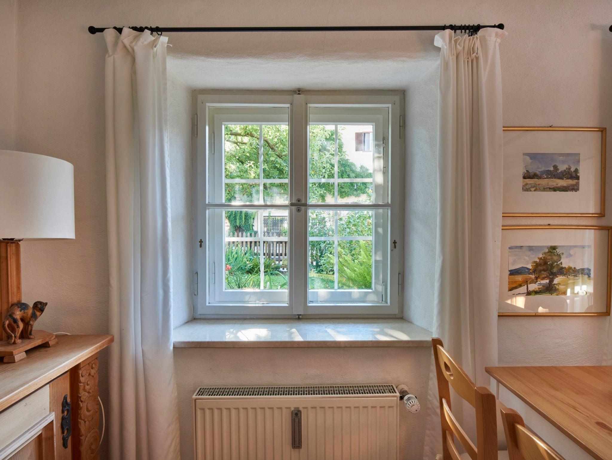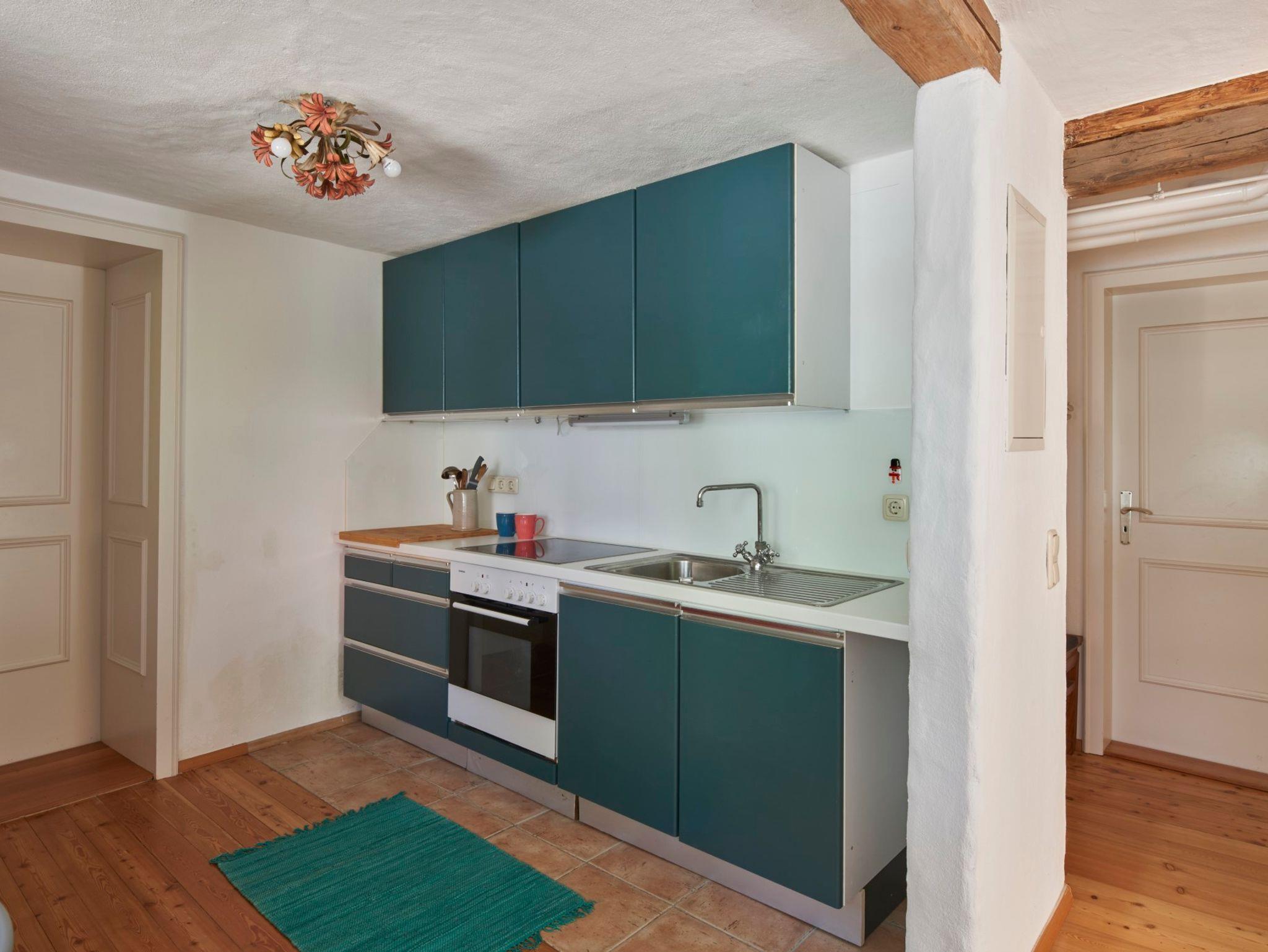 Unsere Ferienwohnung wurde liebevoll eingerichtet. Der Wohn- Essbereich, verfügt über eine Küchenzeile, einen Esstisch mit 4 Stühlen sowie einer Couch und einen Flachbild-TV. Das Schlafzimmer mit Doppelbett (Größe 1,60 x 2,00 m)haben wir mit viel Liebe zum Detail mit unseren originalen Bauernmöbeln eingerichtet. Das Badezimmer verfügt über eine Badewanne sowie eine Waschmaschine. In den Zimmern finden Sie alten Bauernstuck, der aufwendig saniert wurde. Zusammen mit den gebleichten Eichböden und den Sprossenfenstern verströmen die Räume ein gemütliches Flair. Für sehr schallempfindliche Menschen ist es vielleicht wichtig zu wissen, dass es sich um ein historisches Gebäude handelt, man also nicht von einem Schallschutz eines Neubaus ausgehen darf. Den gesamten Gartenteil vor Ihrer Wohnung können Sie zum Entspannen, Lesen oder Erholen oder einfach zum lauschen des Plätscherns des Florianibrunnens nutzen. Hier kann man sich einfach erholen.