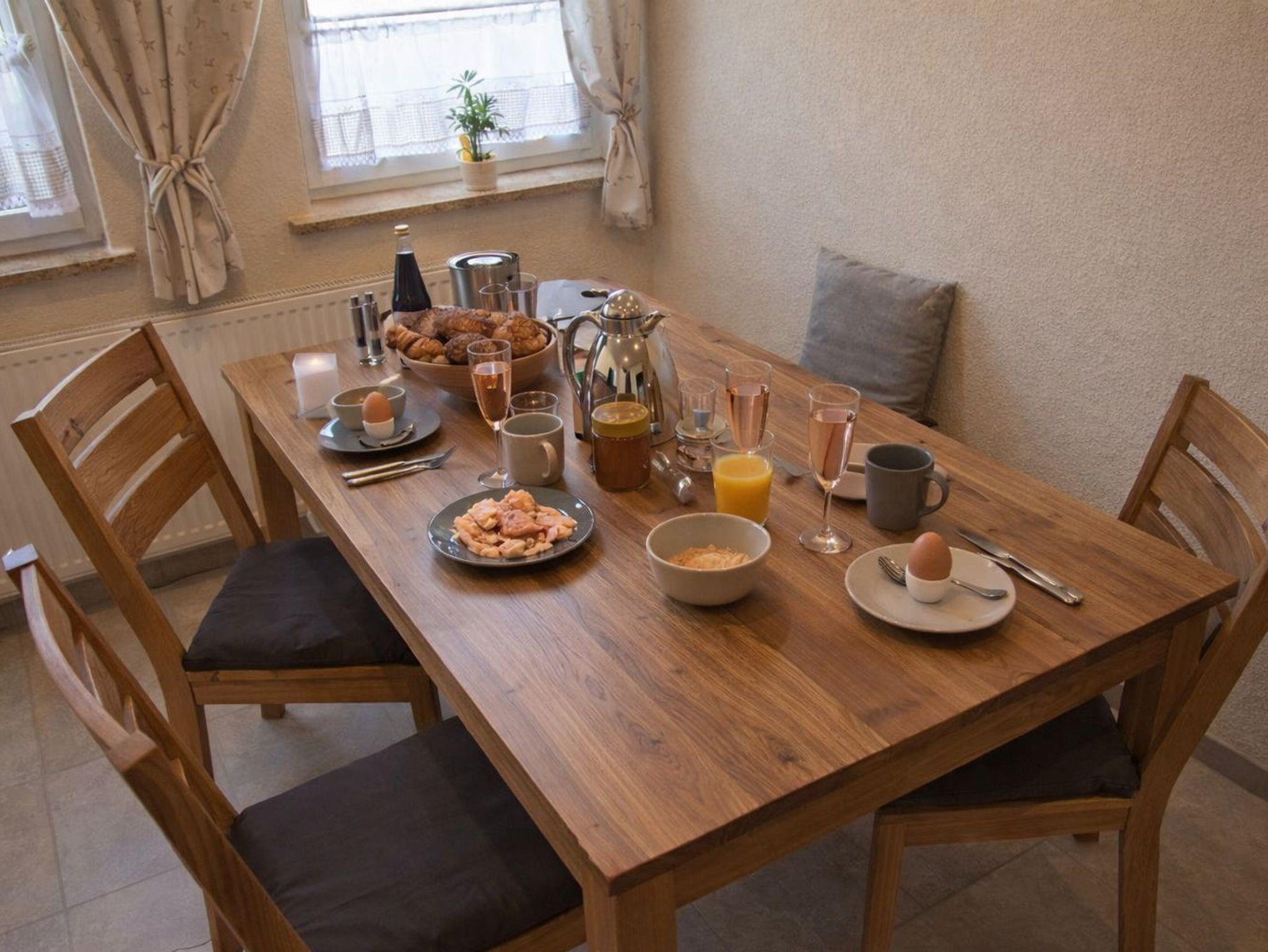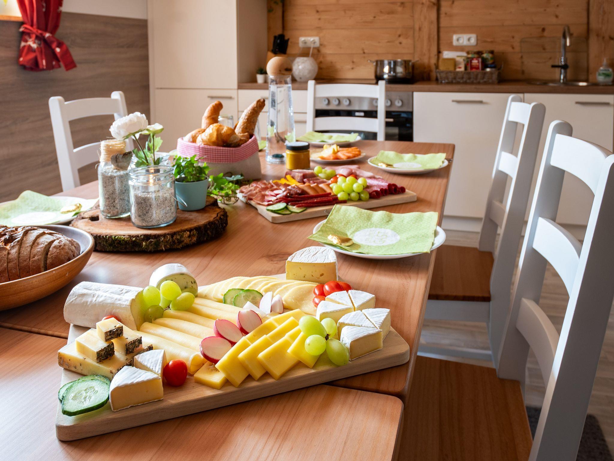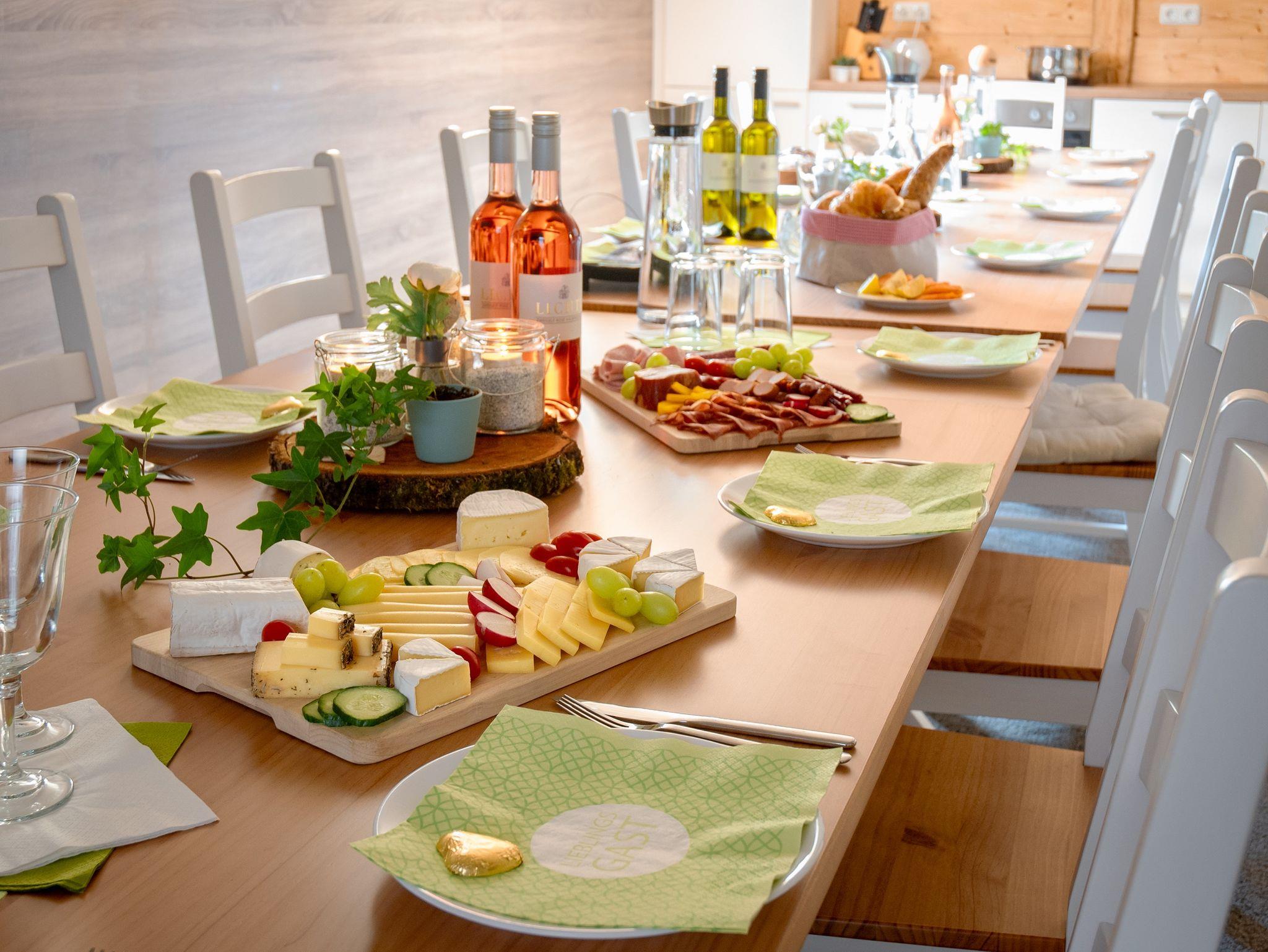 Die Ferienwohnung ist geschmackvoll und hochwertig eingerichtet. Rustikale Holzmöbel und edle Dekorationen schaffen eine gemütliche Atmosphäre.