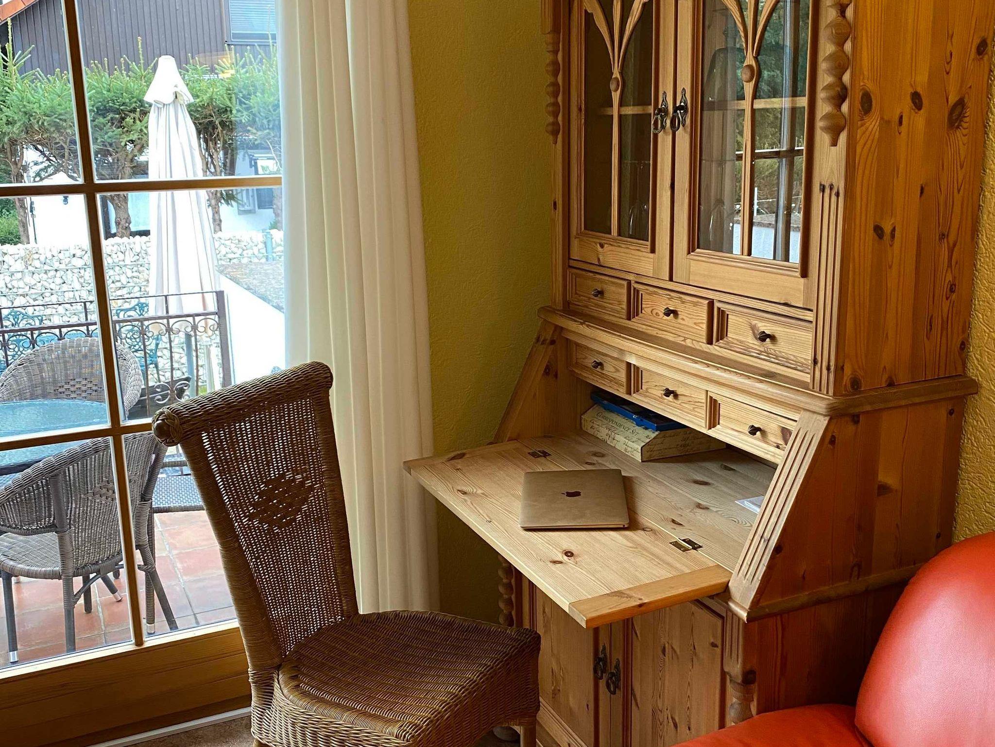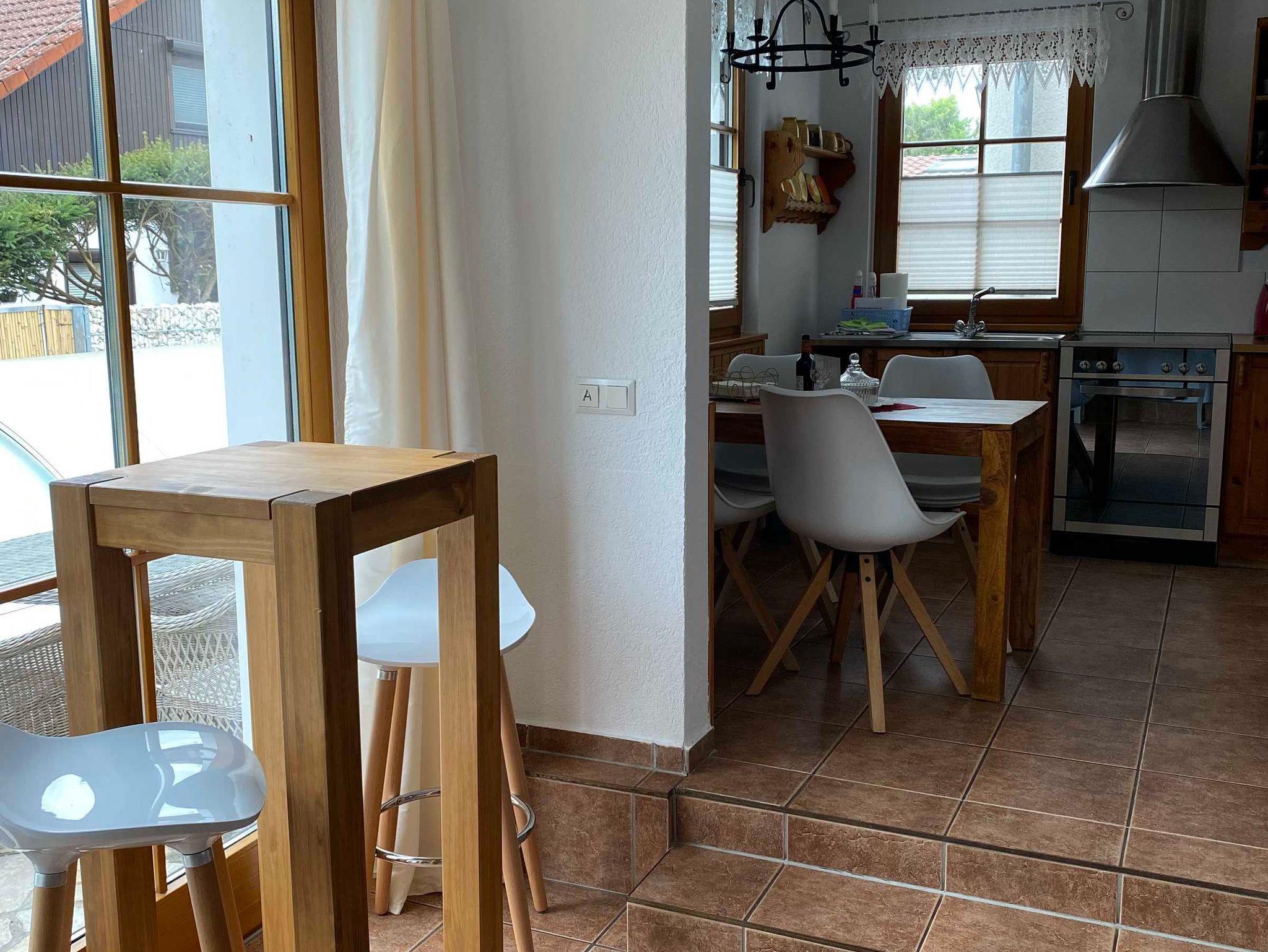 Im offenen Wohnbereich erwartet dich ein bequemer Sofabereich mit Smart-TV, Kaminofen und PlayStation 5 perfekt für entspannte Abende. Die große Terrasse mit Gartenblick lädt zum Frühstück in der Sonne oder einem Glas Wein bei Sonnenuntergang ein.