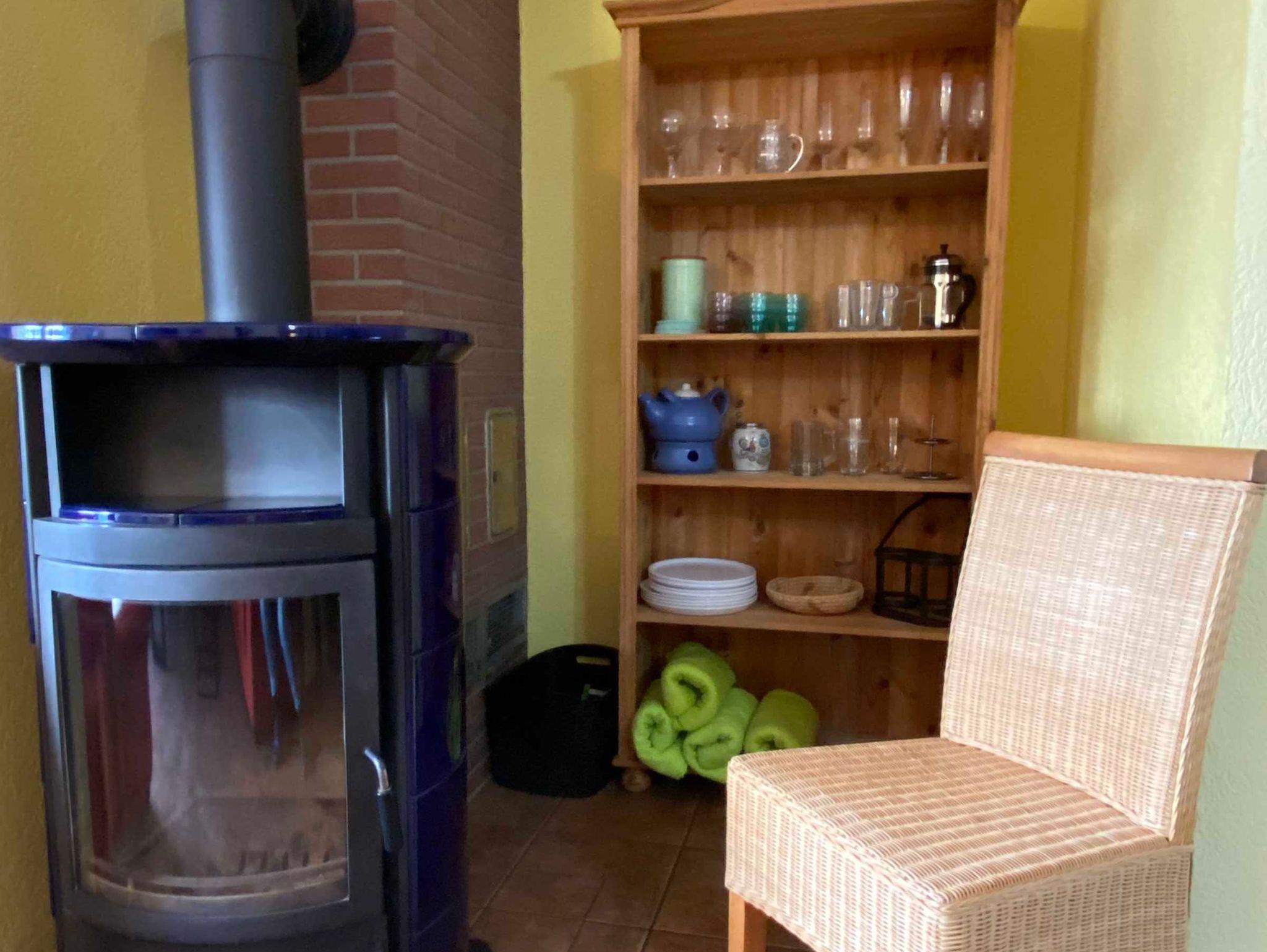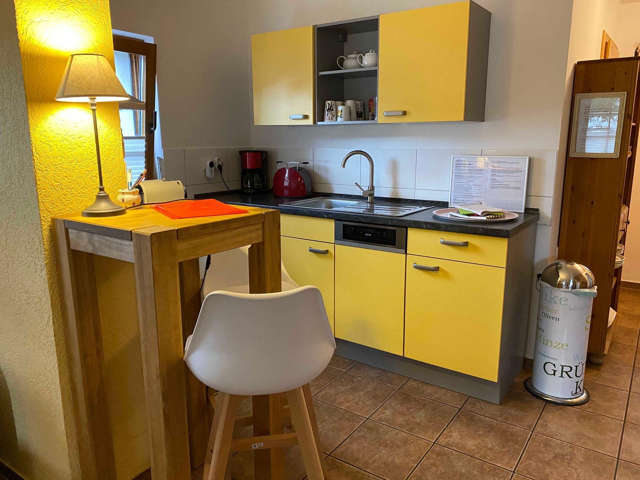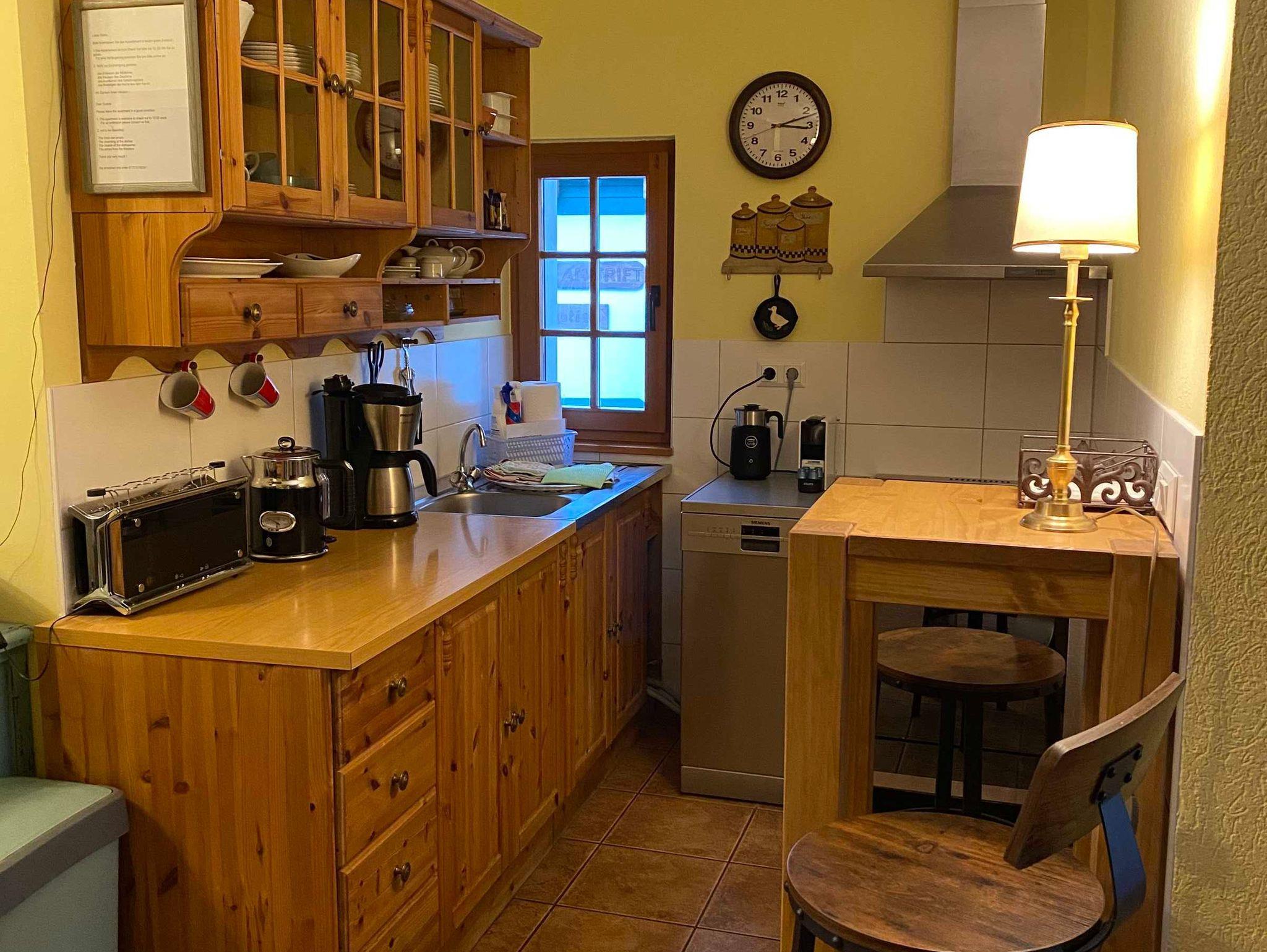 Die voll ausgestattete Küche im Landhausstil bietet alles, was du brauchst, um dich wie zuhause zu fühlen.