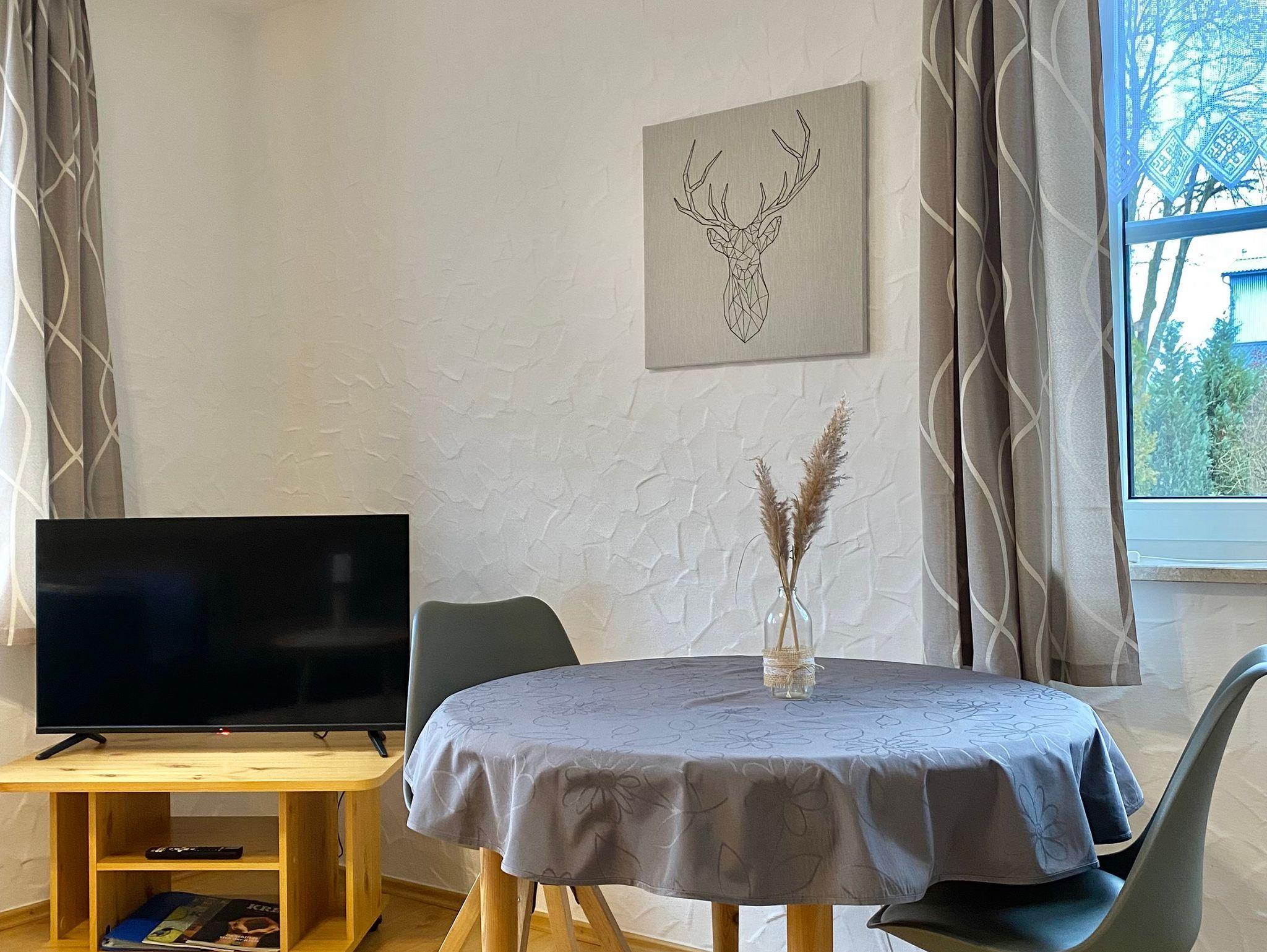 Die komplette Wäsche Ausstattung wie Bettwäsche,Handtücher Dusch und Geschirrtücher wird gestellt und auf Wunsch gerne gewechselt. In unserer Fewo. Gartenblick unten haben wir 1 Flach - Bildschirm mit Kabelanschluss, eine Stereoanlage sowie Telefon und kostenloses W-LAN. Selbstverständlich Können sie unseren schönen Garten mit Liegewiese und Grillplatz nutzen.