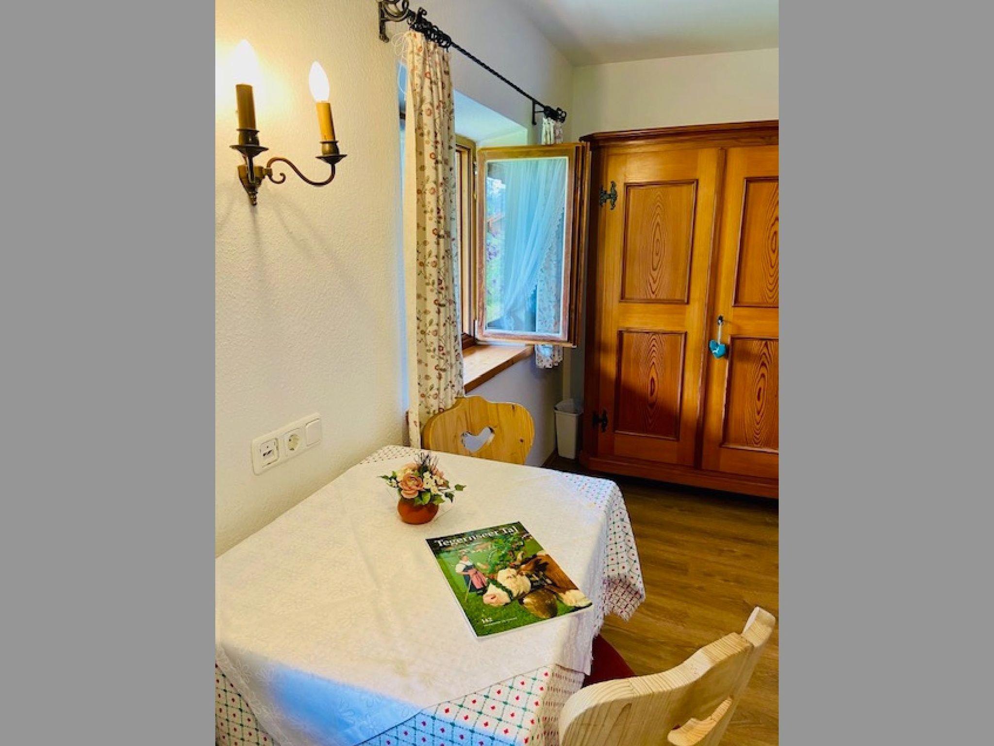 Unser kleines (22 qm), liebevoll mit Bauernmöbeln eingerichtetes Einzimmerapartment für Nichtraucher, ist für zwei Gäste ausgerichtet und befindet sich im 1. OG. Das Apartment verfügt über ein Doppelbett, eine kleine Küchenecke mit Wasserkocher und Kaffeemaschine für die Frühstückszubereitung sowie über ein Bad mit Dusche und WC.