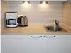 • kleine, offene Küche mit Kühlschrank, Mikrowelle, Kaffeemaschine, Wasserkocher, Eierkocher, Toaster