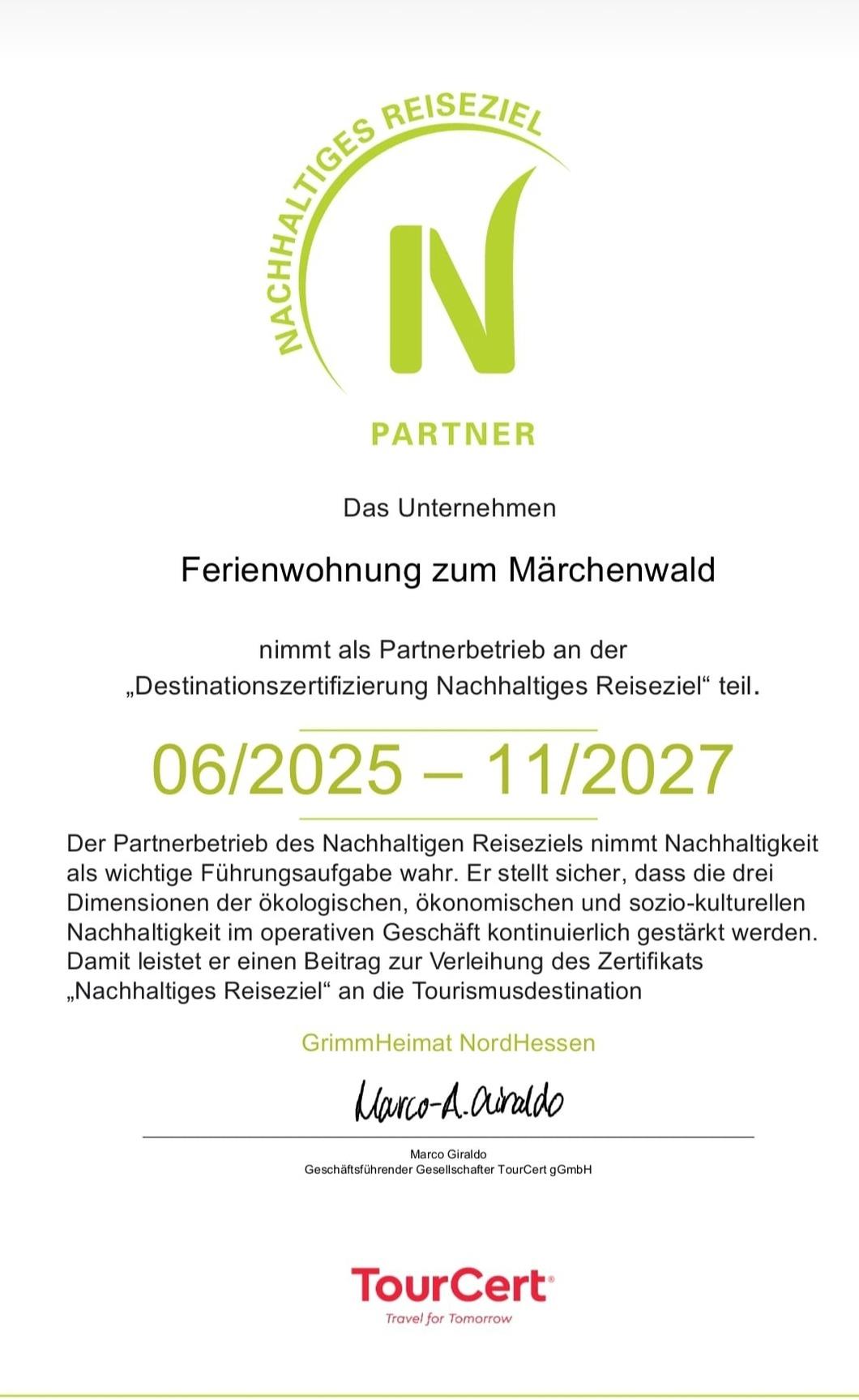 Partnerbetrieb vom Nationalpark-Naturpark- Kellerwald-Edersee und ausgezeichnet von TourCert für besondere Nachhaltigkeit. Luxus kann auch nachhaltig sein.