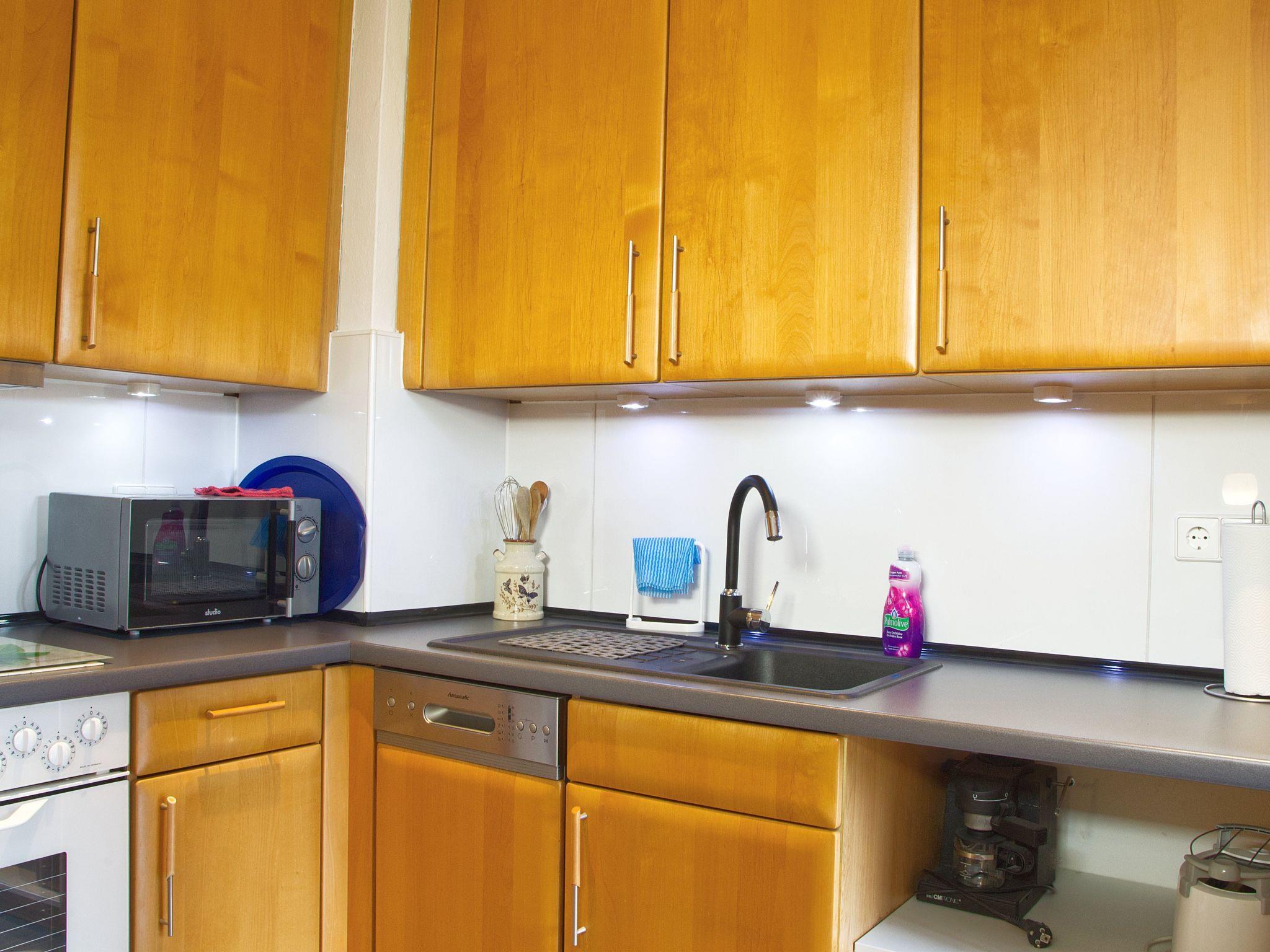 Küche mit Ceran-Herd, Backofen, Spülmaschine, Kühl-/Gefrierschrank, Mikrowelle , Wasserkocher, Kaffeemaschiene usw. Wohnzimmer mit Digitalem SAT/TV, CD/Radio, Ledercouch. Schlafzimmer mit erhöhtem Doppelbett. Bad/Dusche, sep. WC, Wäsche inkl. Handtücher und Bettwäsche. W-Lan und Telefon gegen Gebühr.