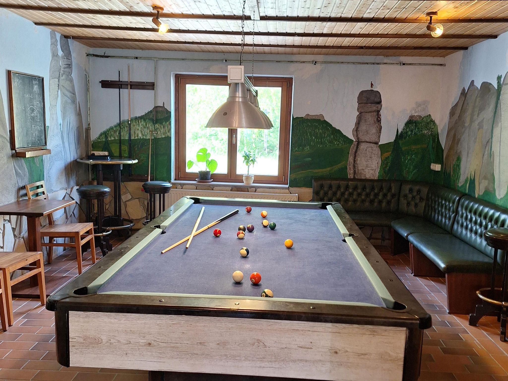 Erleben Sie in unserem Gästehaus eine perfekte Kombination aus erholsamer Abgeschiedenheit und vielfältigen Freizeitmöglichkeiten. Eingebettet in die malerische Landschaft von Bahretal, genießen Sie hier die friedliche Kulisse des Erzgebirges. Ob für einen kurzen Aufenthalt oder einen längeren Urlaub, der Aufenthaltsraum und die Bibliothek bieten einen Ort der Ruhe und Entspannung, während unsere Liegewiese ideal für Sonnenstunden im Freien ist.Der Billardtisch, der Dartautomat und die Tischtennisplatte versprechen gesellige Stunden mit Familie oder Freunden.