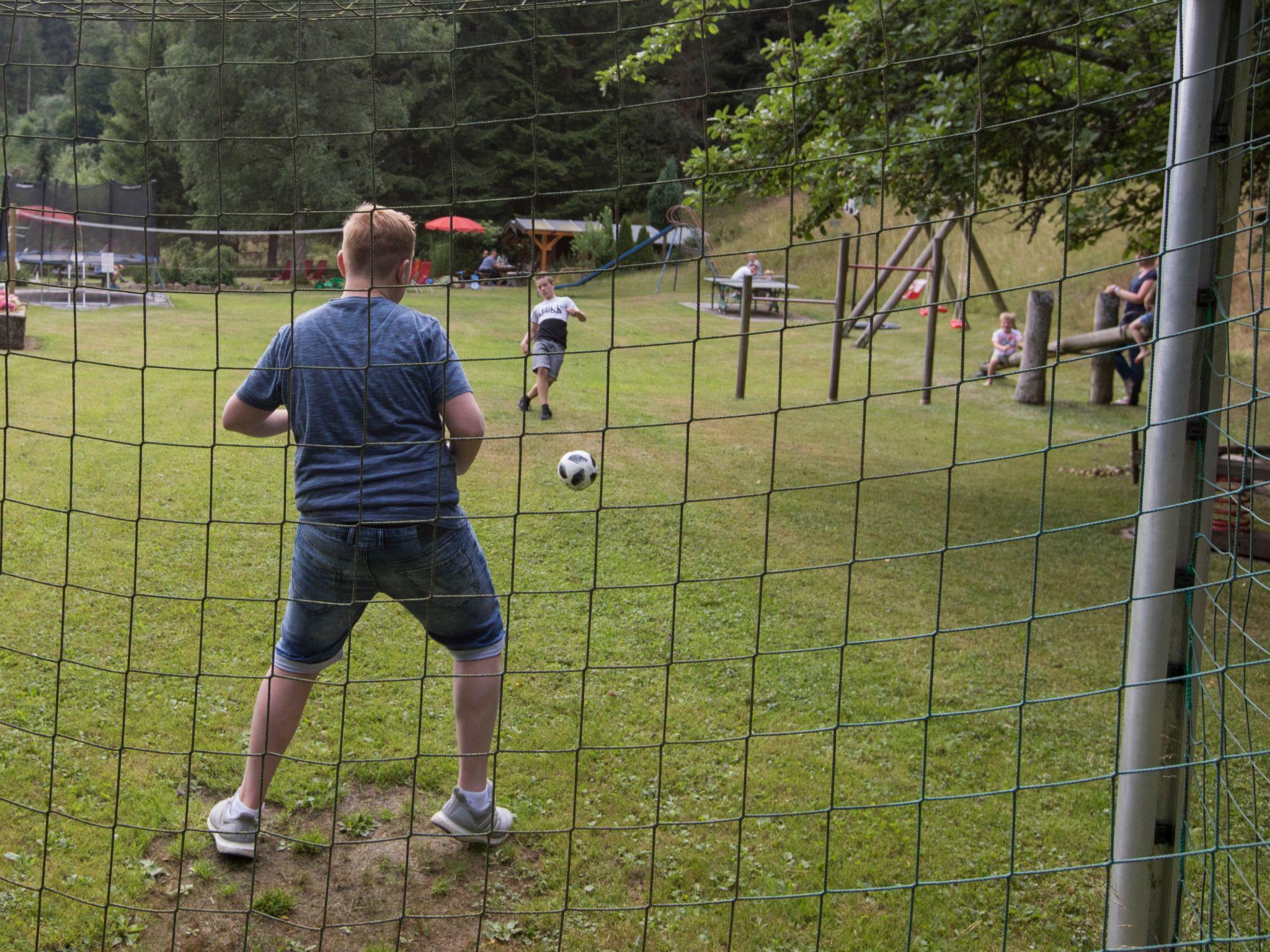 einmalige Freizeitwiese über 2000 qm die ihresgleichen sucht,-- das drumherum und das Wohlfühlen gehören zusammen --Für unsere kleinen Gäste ist es ein richtiges Paradies mit Schaukel-, Rutschbahn- gr. Sandkasten- Wippe- Kinderhäusle, Fußballtor,- Tischkicker,- Tischtennis, - Basketballkorb und natürlich ein großes Trampolin mit Sicherheitsnetz und viele Ki Fahrzeuge , ideal zum spielen und planschen im kleine Weissenbächle -- Für die Großen-- die Eltern können auf der Sonnenliege relaxen oder in unserer Naturwassertretanlage etwas für die Gesundheit tun - hinterher kann man sich beim grillen stärken, eine rustikale Grillhütte steht zum gemütlichen sitzen bereit,