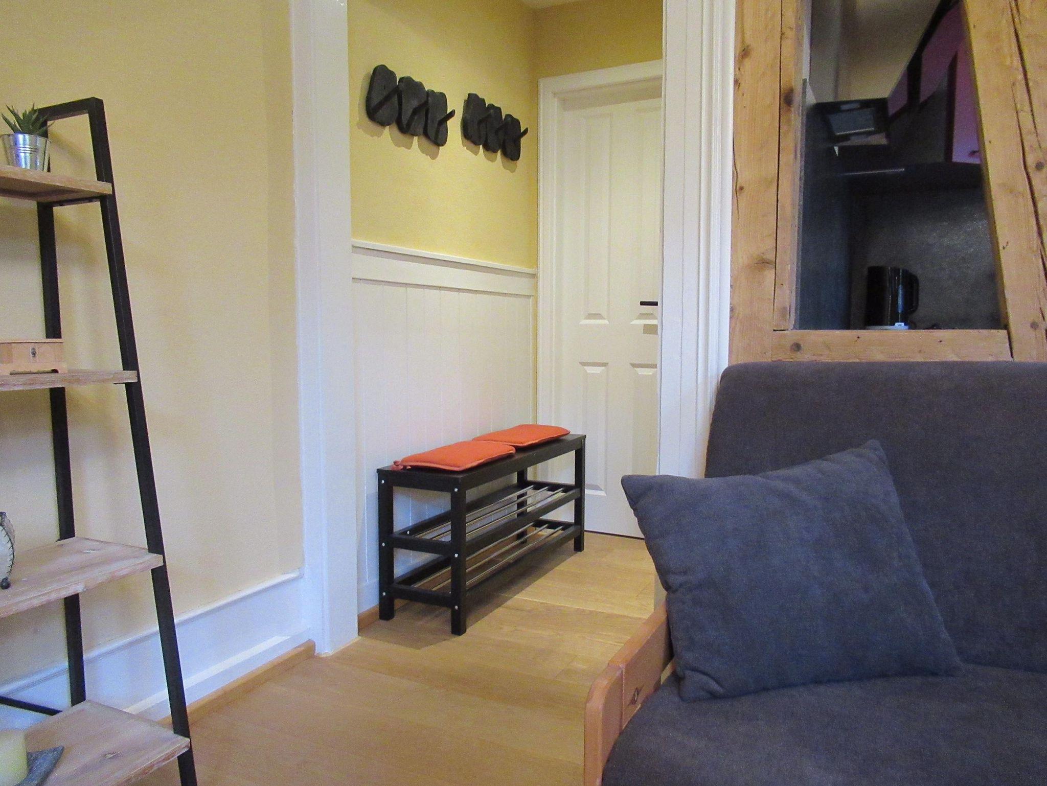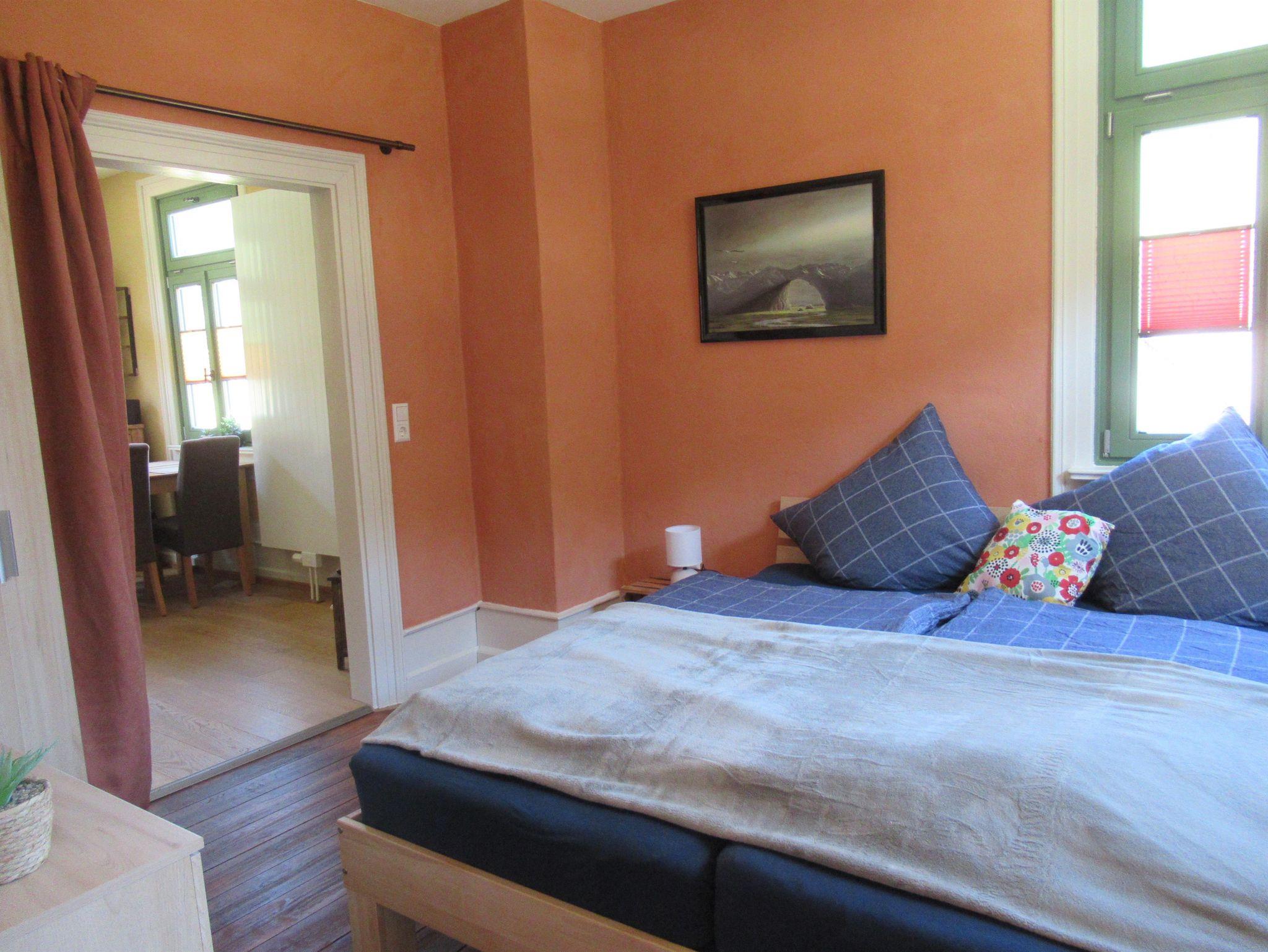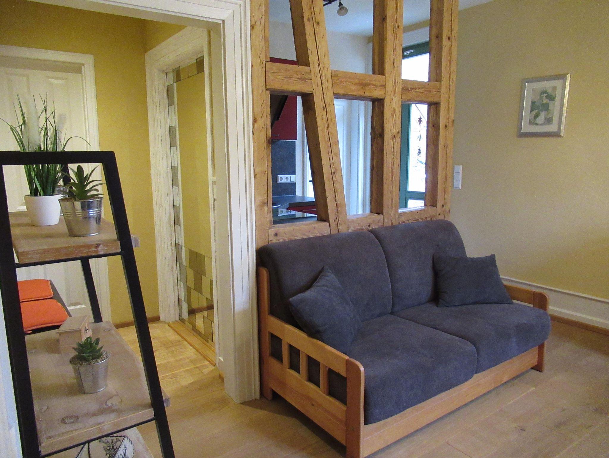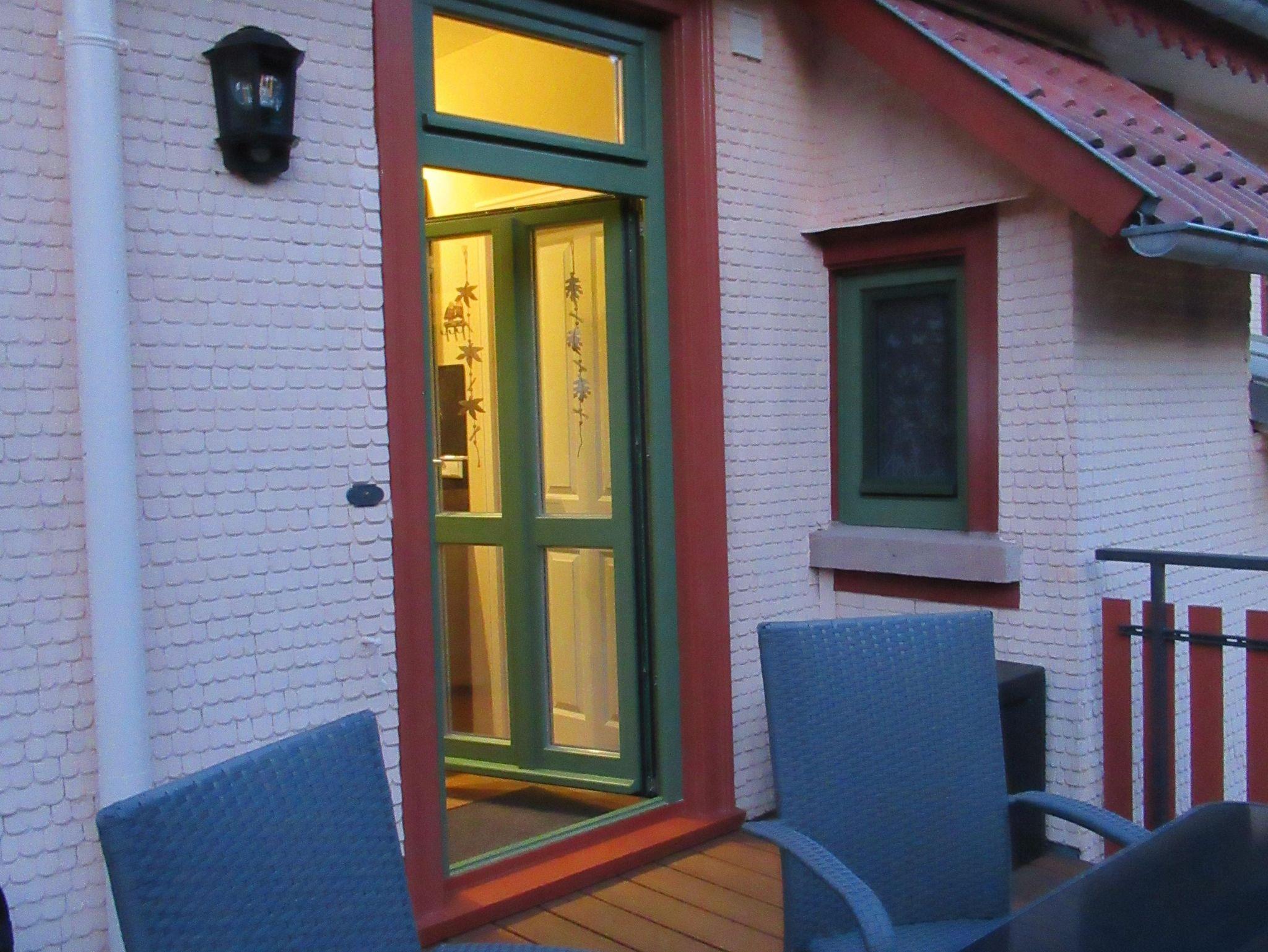 Die neu eingerichtete Wohnung befindet sich im ersten Obergeschoss unseres Hauses und verfügt über einen geräumigen Balkon an der Westseite des Hauses. Die helle und freundliche Atmosphäre in den Räumen lädt zum Essen, Trinken und Verweilen ein. Der Balkon dient auch gleichzeitig als eigener Eingang und ist über eine komfortable Wendeltreppe zu erreichen.