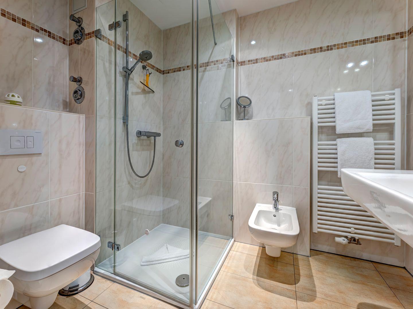 Das moderne Badezimmer mit Dusche und Bidet rundet das Gesamtbild ab und sorgt für zusätzlichen Komfort während Ihres Aufenthalts. Für Ihren Komfort steht Ihnen eine Waschmaschine in der Wohnung zur Verfügung.