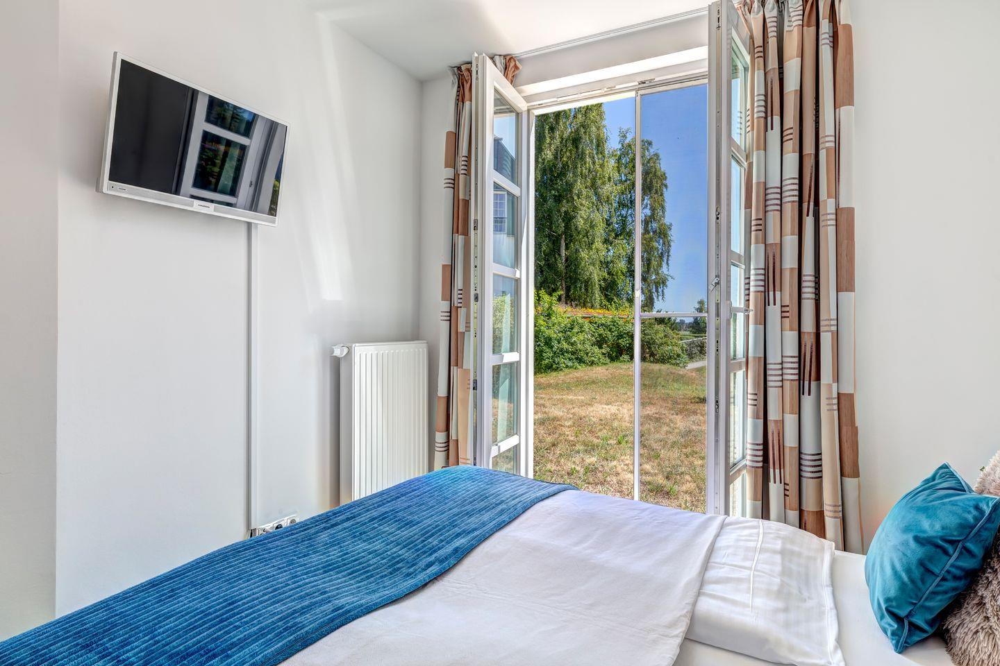 Die Wohnung begeistert nicht nur durch ihre idyllische Lage, sondern auch durch eine vollausgestattete und moderne Einbauküche, die sich harmonisch in den gemütlichen Wohnbereich integriert. Von hier aus gelangen Sie auf die Terrasse, die einen malerischen Blick auf das Achterwasser bietet. Hier haben Sie die ideale Gelegenheit, Ihre Urlaubstage entspannt zu gestalten, sei es beim Frühstück in der Morgensonne oder beim Ausklingen des Tages bei einem Glas Wein.